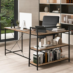 Martin L-Shaped Home Office Desk - Black/Rustic Brown