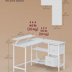 Corliss Reversible L-Shaped Corner Desk for Home Office - White