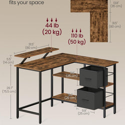 Calix Reversible L-Shaped Home Office Desk - Rustic Brown