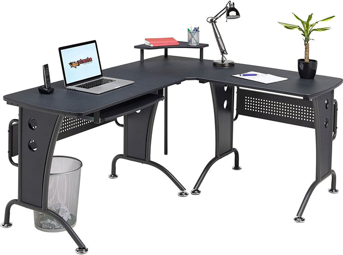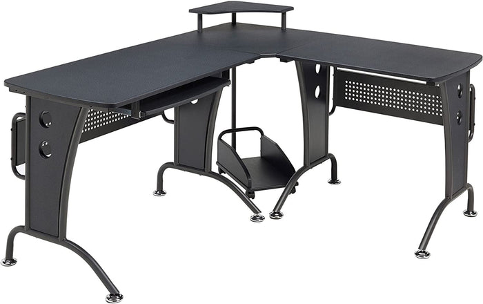 The Regent Corner Desk For Gaming is perfect for the seasoned gamer with its ultra wide  corner desk top allowing for multi-monitor gaming setups. This corner desk is also suitable to use as a workspace with it's clean modern design. The desk also features a computer tower holder as well as allowing ample space for your mouse and keyboard when you are playing, studying, or working.