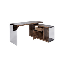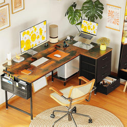 Zyra Reversible L-Shaped Corner Desk for Home Office - Rustic Brown & Black