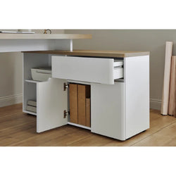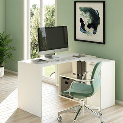 The space-saving design is ideal for your room, office, study, or other small spaces. With a large, inviting surface that's excellent for working, designing, learning, and playing, it's as useful as it is elegant. This sturdy workstation has a wide desk top space. The desk is made of solid and manufactured wood.