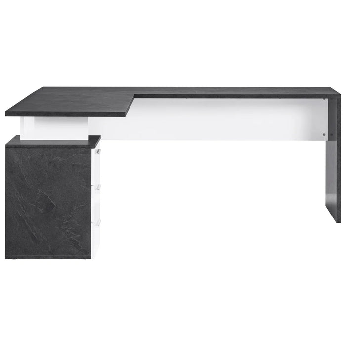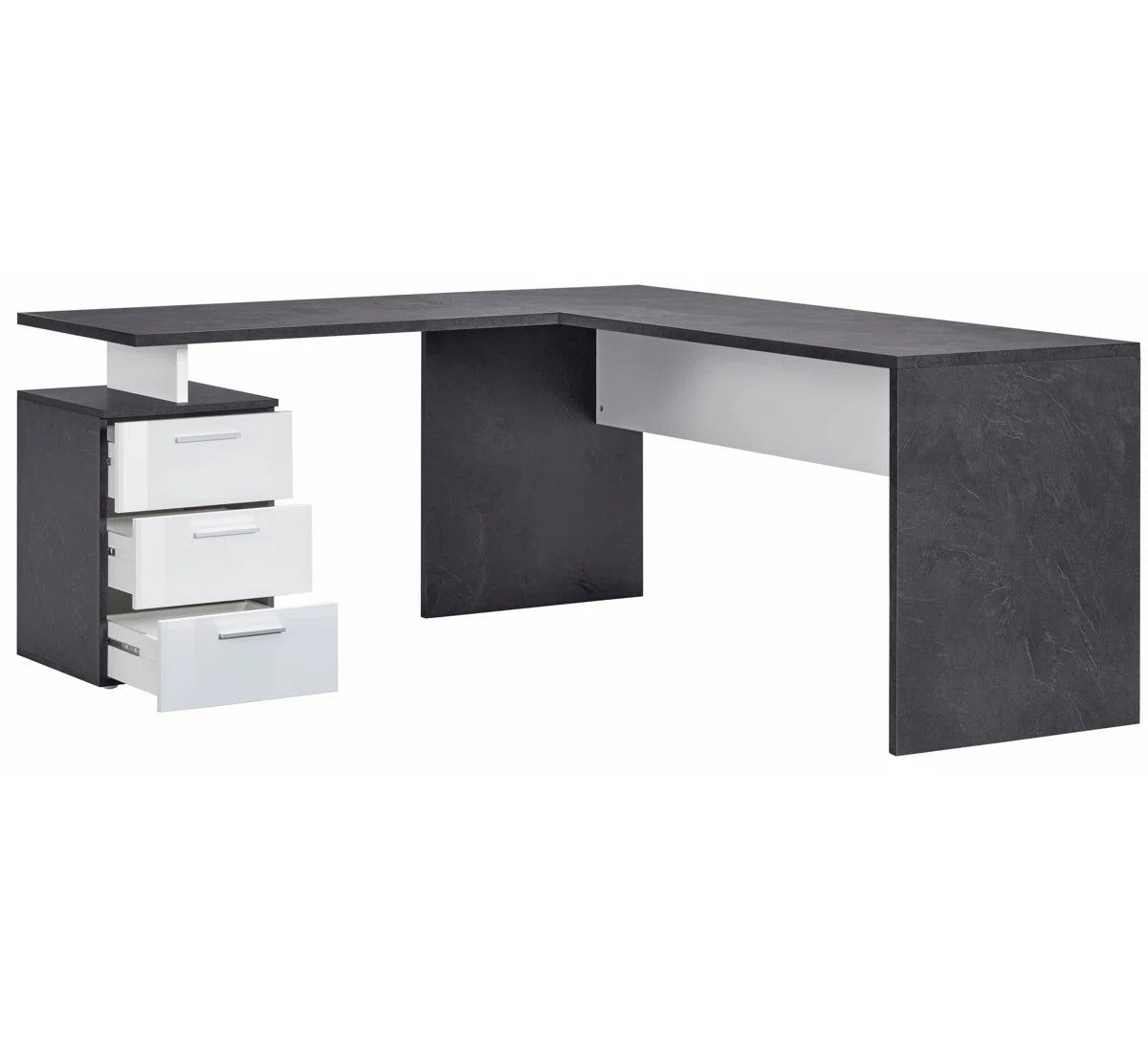 Built with durable manufactured wood, it features an integrated cabinet and three smooth-glide drawers for efficient organization of documents and supplies. The fixed drawer position adds structural strength, and the desk’s corner design optimizes your office layout.