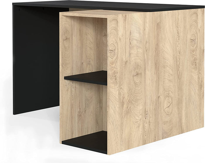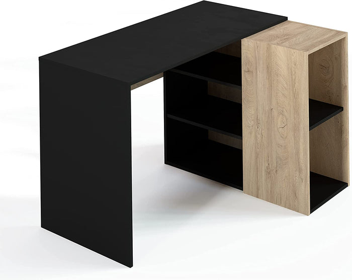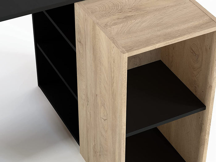 This Rory L-shaped corner desk is both eye-catching and modest in its elegance, making it a great addition to any modern home. Strong and lightweight melamine construction. Shelves are built right in for easy organization.