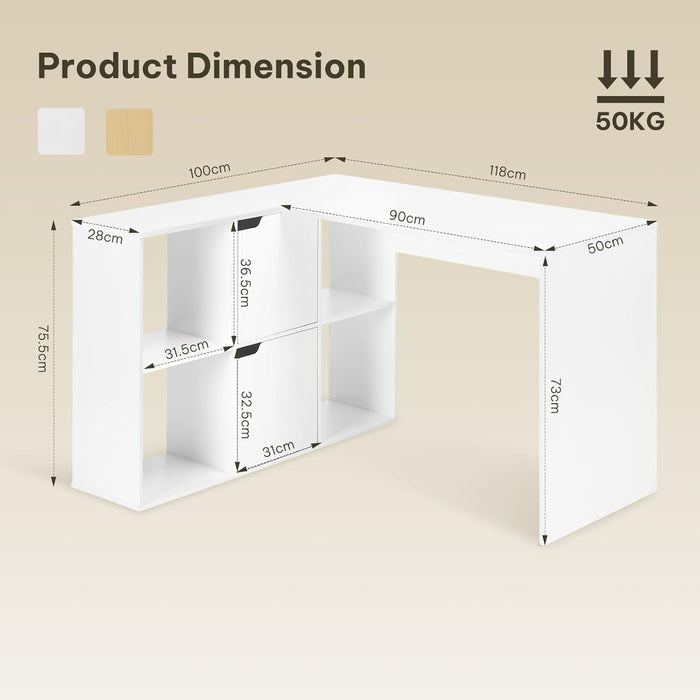 With multiple open and closed compartments, you can easily organize books, files, and personal essentials while keeping your desktop clutter-free. Crafted from durable engineered wood with a melamine finish, this space-saving desk ensures long-lasting use and a clean, polished look. Ideal for small apartments, home offices, or bedrooms.