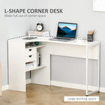 The Amberly L-Shaped Desk is perfect to tuck into a corner to create a home workspace with it's clean modern style and functional storage within easy reach. This solid workstation features a large desk top area and is constructed from particle board and MDF. This corner desk features two drawers and three storage compartments.