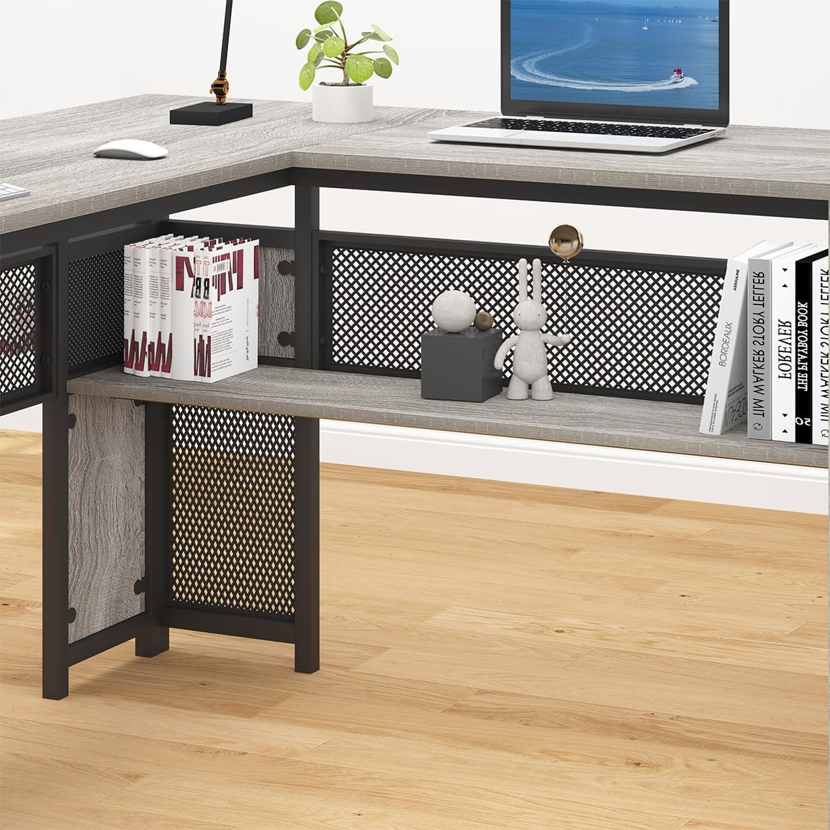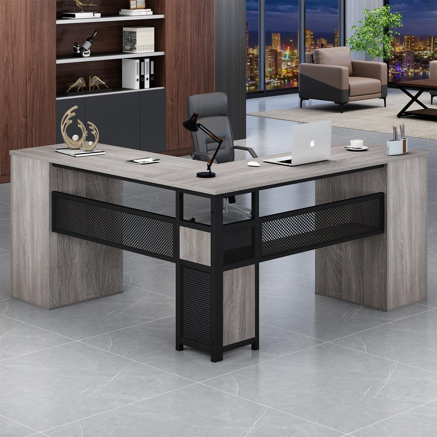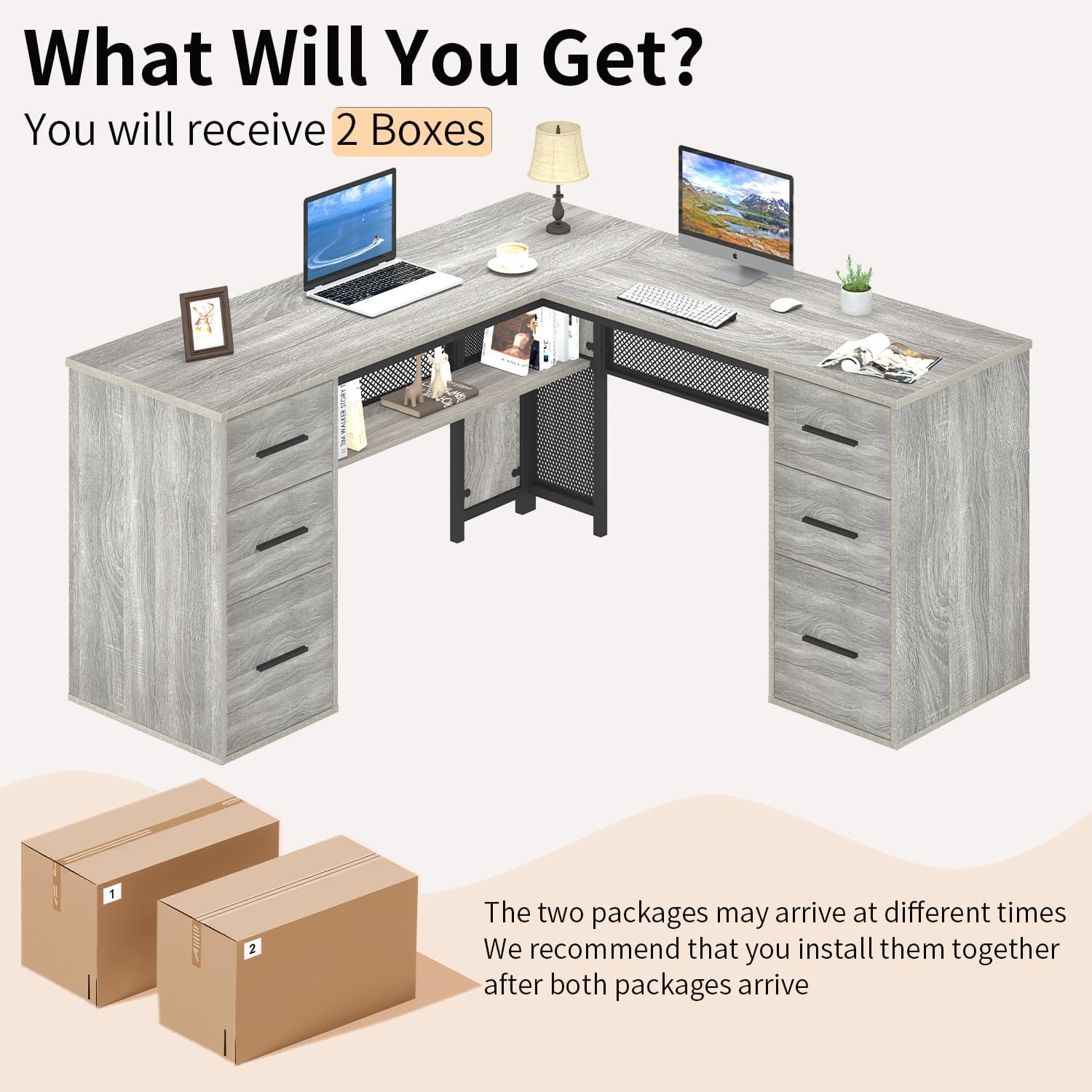 Upgrade your workspace with the Podhi L-Shaped Reversible Desk in Grey — a perfect fusion of modern rustic style, smart storage, and heavy-duty durability. Crafted with a premium light grey oak finish, this executive L-shaped desk is designed to maximise both productivity and space, making it ideal for home offices, gaming setups, or professional work environments. The robust metal frame paired with high-quality MDF ensures exceptional stability with no shaking or movement, while the reversible L-shape allows you to customise the layout to suit your room perfectly. With a generous surface area, integrated shelving, and a versatile drawer system, the Podhi desk delivers a clean, organised, and highly functional workspace that looks as good as it performs.