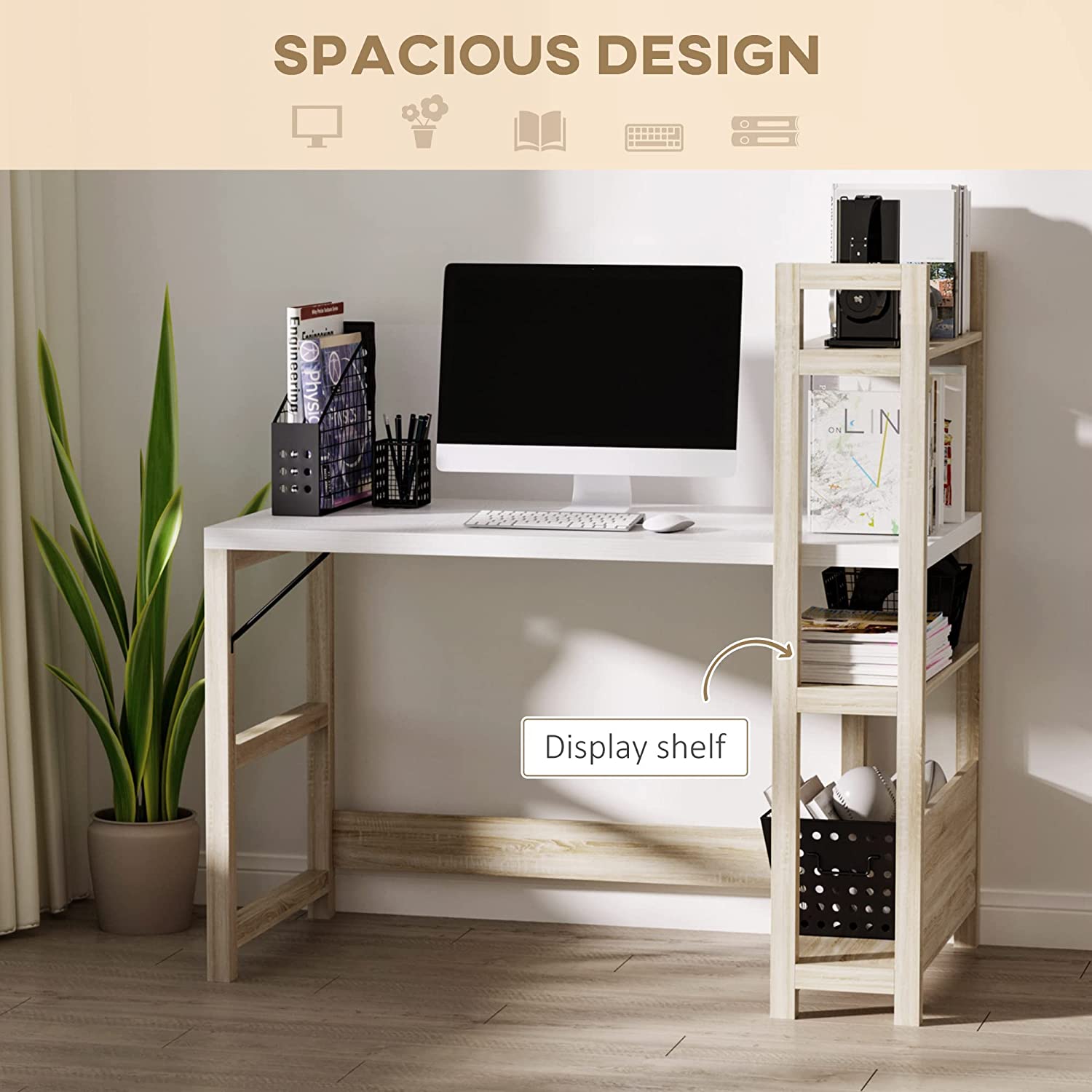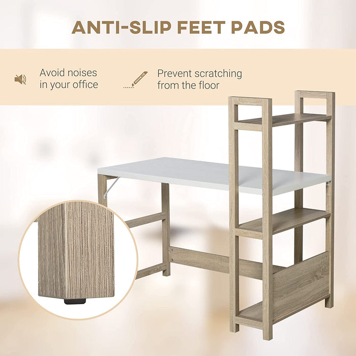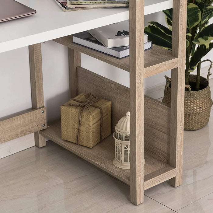 This season, let the Tara Corner Desk relieve you of your burdensome workload. It's a two-in-one design that combines a desk and shelves so you can get work done and keep your things neat and tidy in one sleek piece of furniture. Constructed from particle board, the sturdy design guarantees a steady area to work, and the sleek melamine covering protects against minor scuffs and scratches. The three roomy shelves on the right provide plenty of storage and display space.