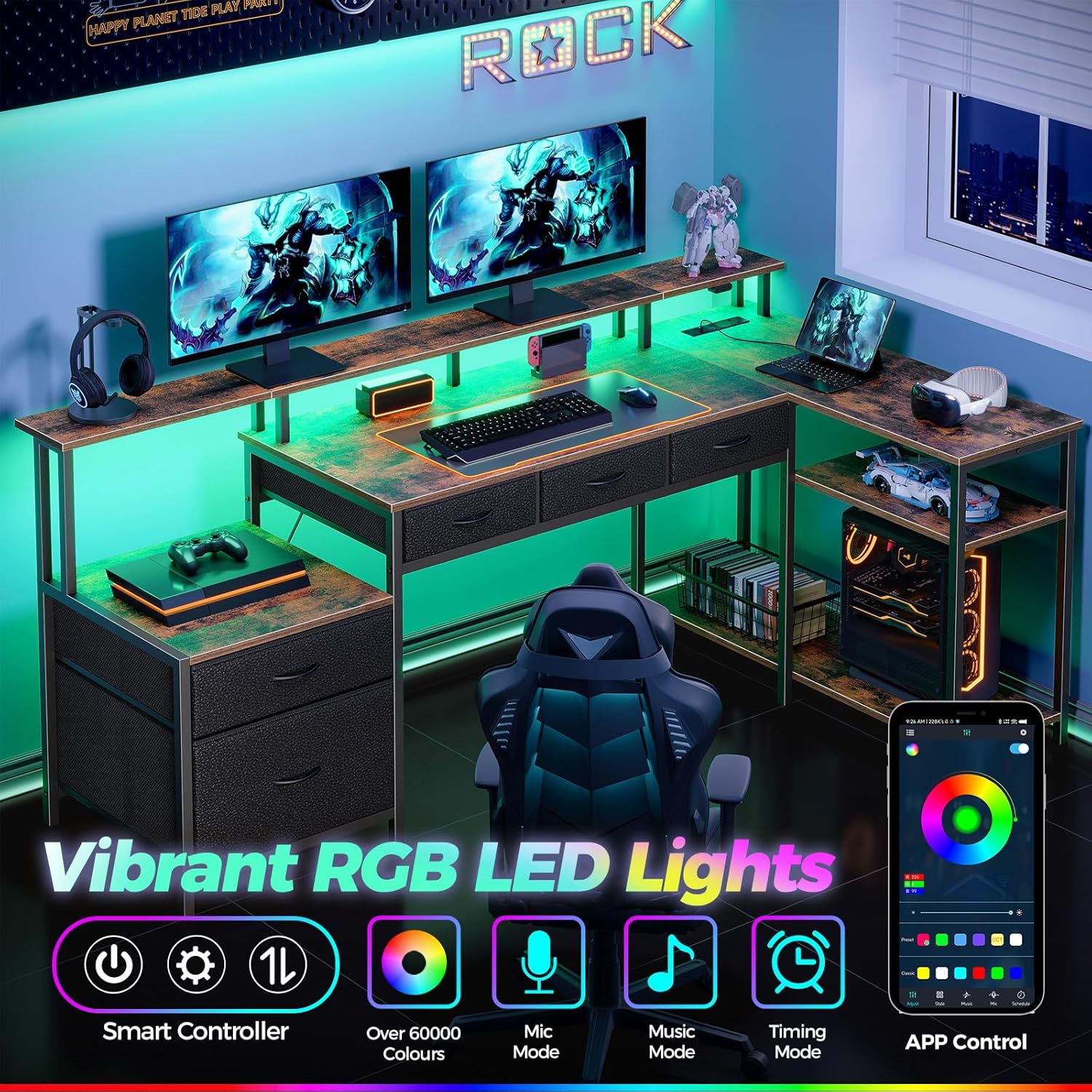 Upgrade your workspace with the Apolis L Shaped Computer Desk — a smart, stylish, and highly functional desk designed for modern home offices, study spaces, and gaming setups. With a spacious reversible corner design, built-in USB and plug sockets, customisable RGB LED lighting, generous drawer storage, a file cabinet, and an ergonomic monitor shelf, this desk is made to keep everything organised, powered, and within easy reach. Whether you're working from home, studying, streaming, or gaming, the Apolis creates a clean, efficient, and comfortable setup that looks as good as it performs.