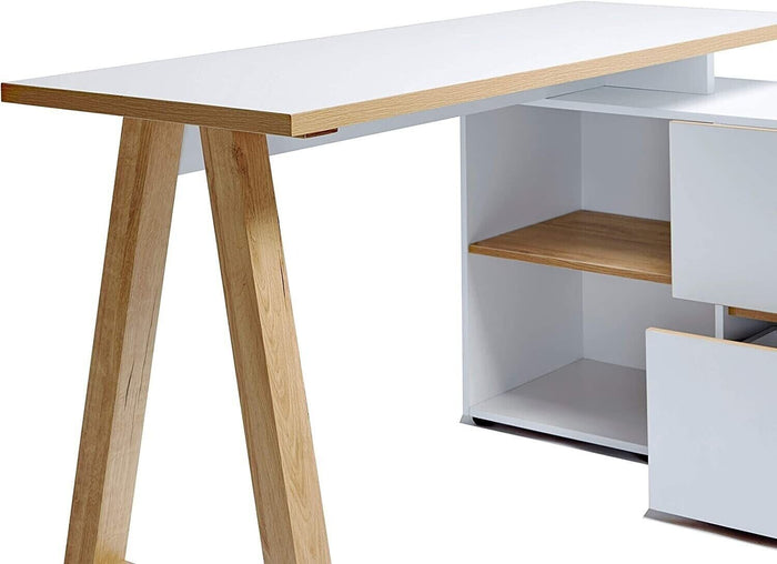 The space-saving design is ideal for your room, office, study, or other small spaces. With a large, inviting surface that's excellent for working, designing, learning, and playing, it's as useful as it is elegant. This sturdy workstation has a large workspace, this desk features a drawer and open shelves, perfect for storing files. The desk is made of high-quality manufactured wood.