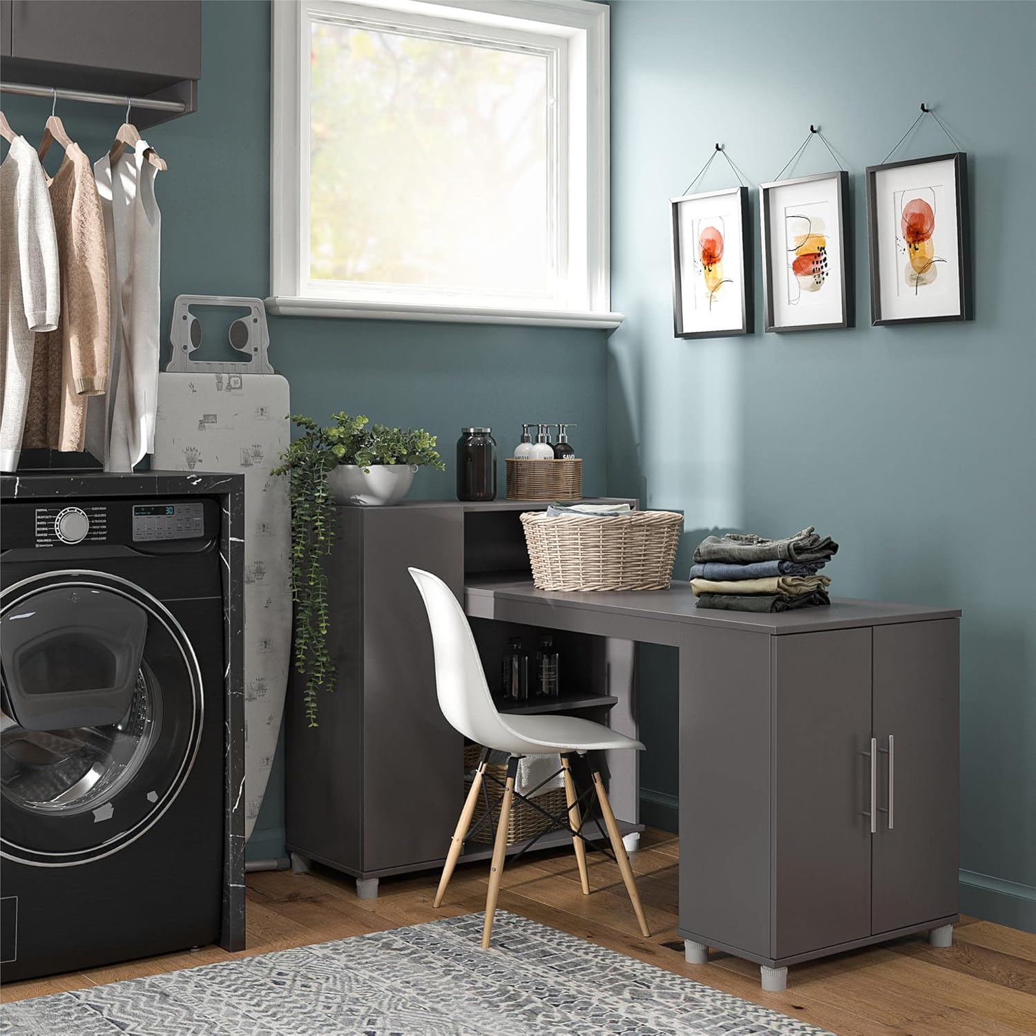 The George L-Shaped Home Office Desk - Grey by SystemBuild offers a practical and stylish solution for modern workspaces. With its sleek graphite grey laminated finish and durable engineered wood construction, this desk blends seamlessly into any home office, study, or creative space. Its L-shaped design maximizes corner areas, giving you plenty of room to spread out your laptop, books, or projects while keeping essentials within reach.
