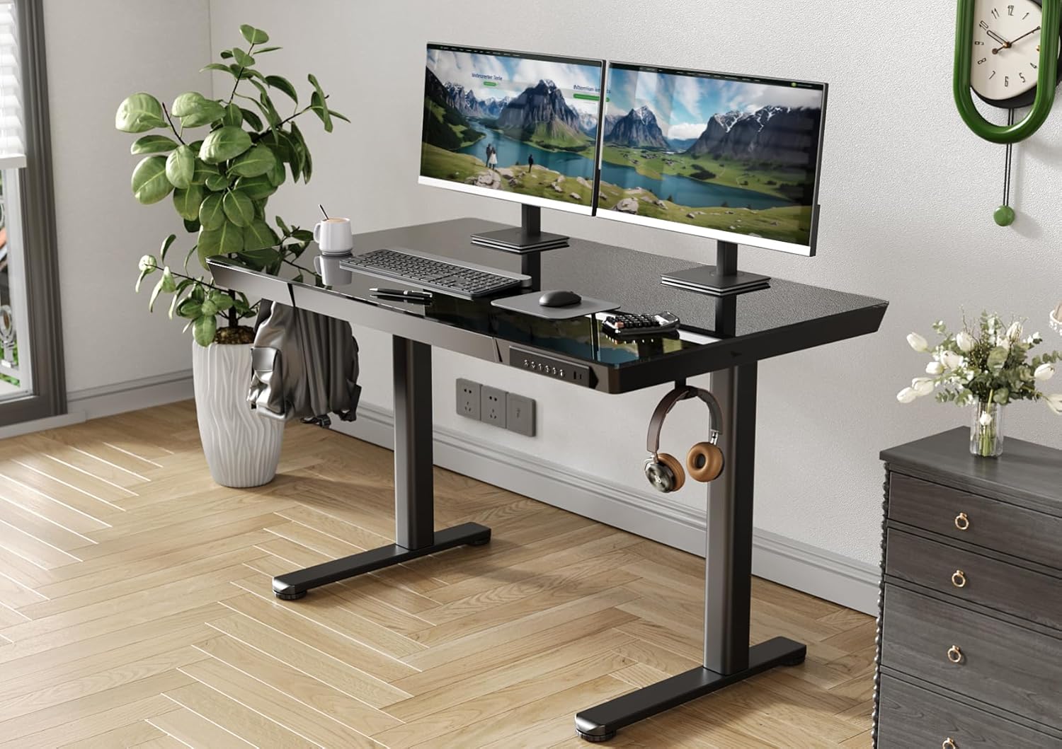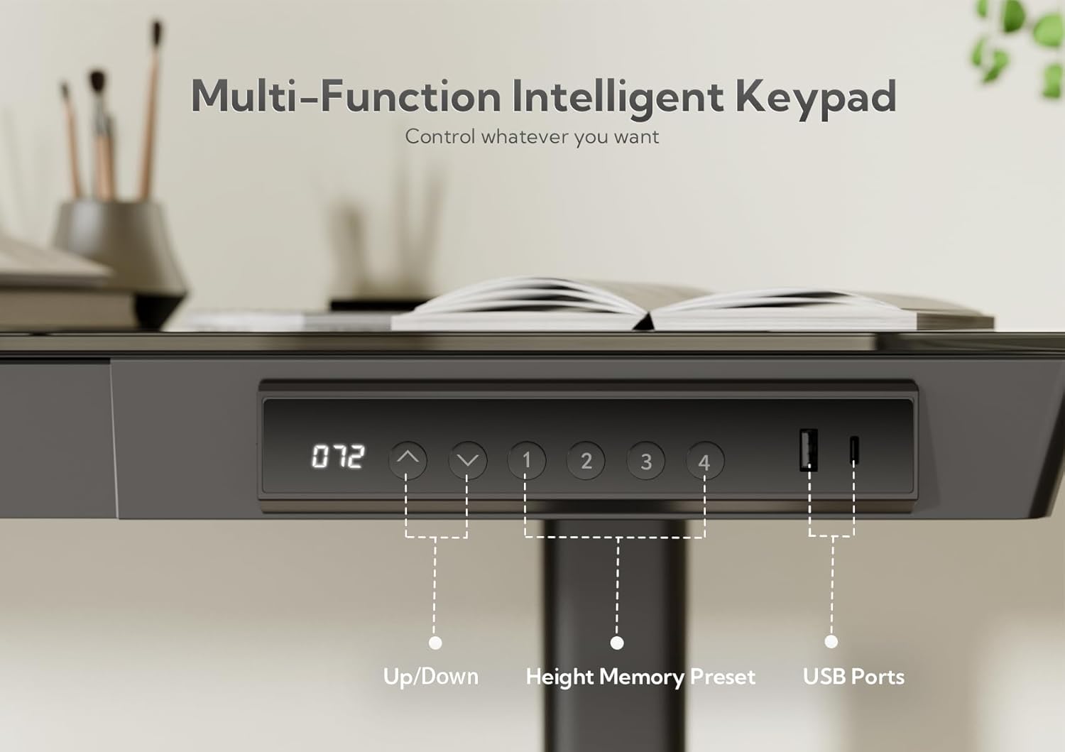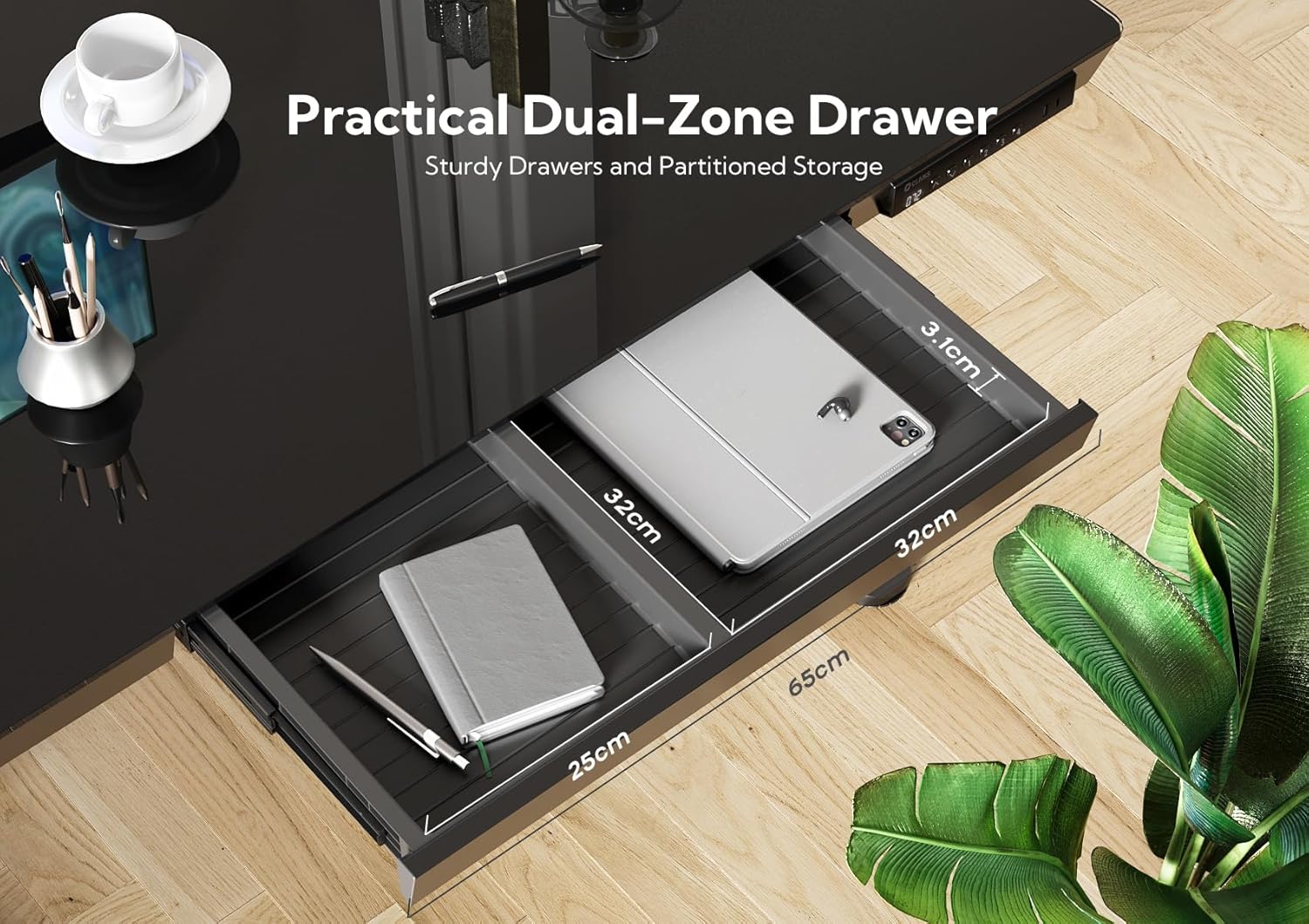 Built with an electric height-adjustable system, the Ivana Desk lets you switch effortlessly between sitting and standing. With height ranges from 72 cm to 118 cm, plus four programmable memory presets, it adapts instantly to your preferred ergonomic position. Its integrated USB ports, Type-C port, and hidden storage drawers make this desk a multifunctional and clutter-free solution for modern lifestyles. Stylish, sturdy, and designed for comfort—it's the perfect upgrade for any contemporary home office.