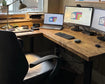 The Jahime L-Shaped Corner Desk combines a substantial work surface with a sturdy metal frame. All of your office supplies will be safe in their strong frame. The placement of the detachable monitor stand allowed for flexibility in choosing the side on which to place the device.
