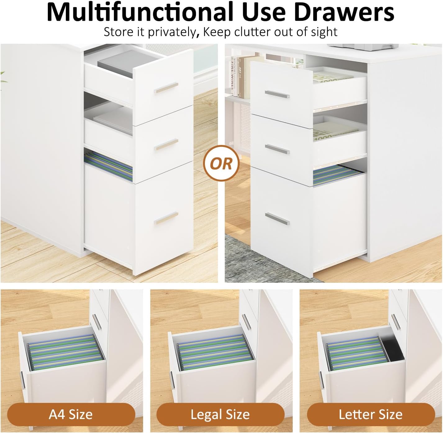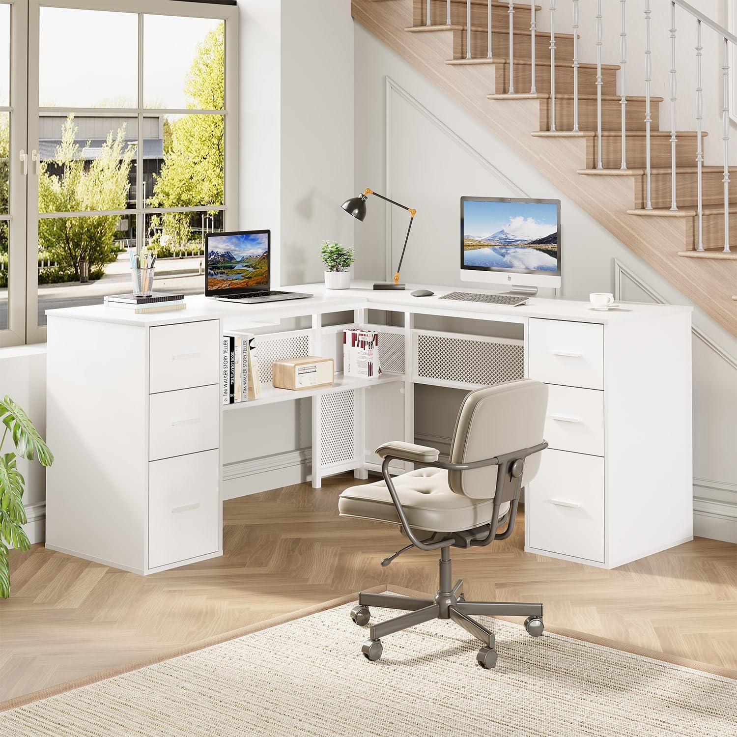 Upgrade your workspace with the Louie L-Shaped Desk for Home Office, designed to bring functionality, style, and durability together in one versatile piece. With its spacious surface and ample storage, this desk provides plenty of room for multiple monitors, laptops, and work essentials, making it ideal for working, gaming, writing, or studying. The country style in sleek white adds a modern yet cozy touch, blending seamlessly into bedrooms, studies, or office corners.