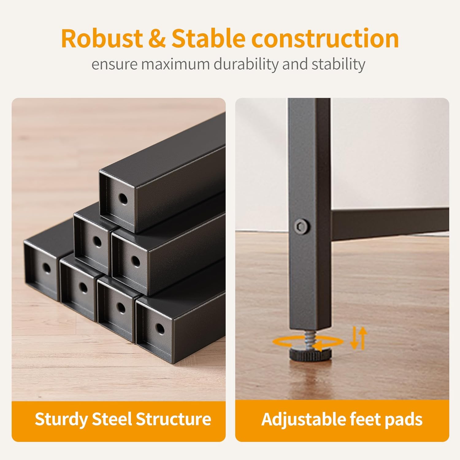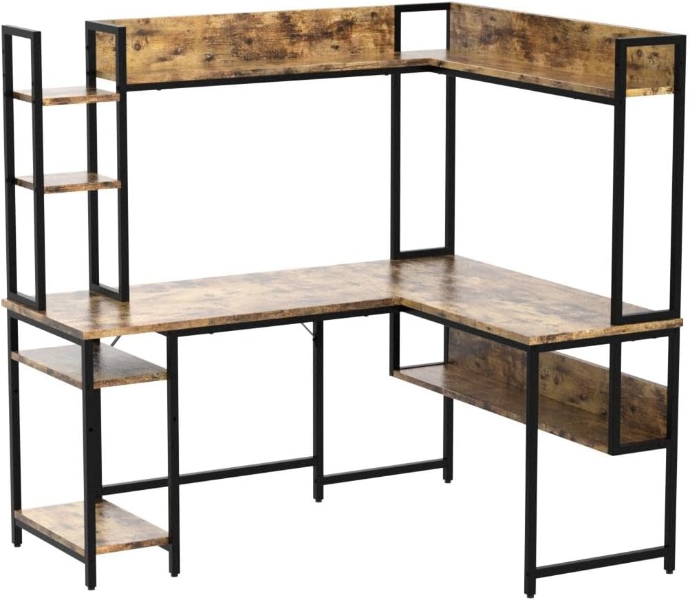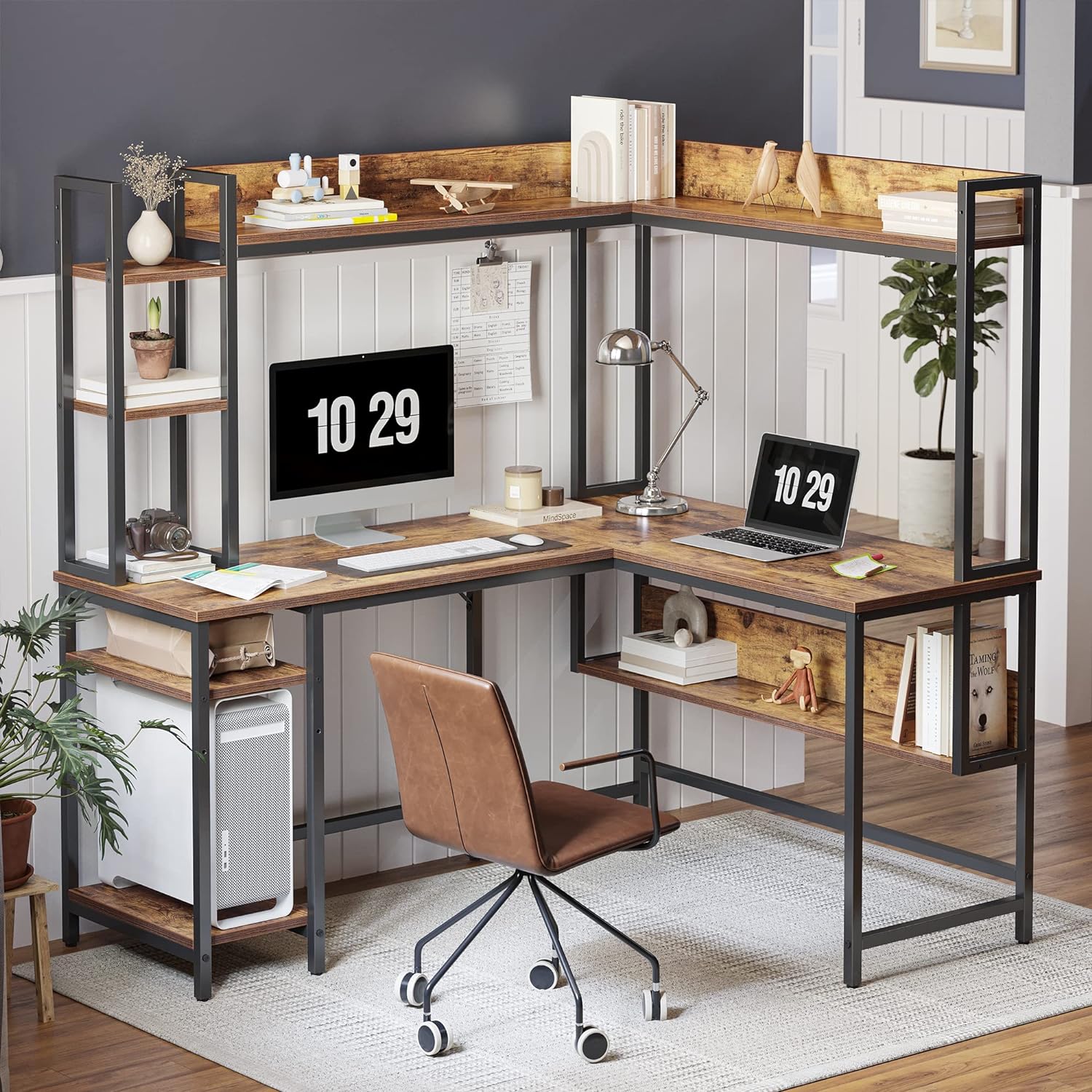 Large Storage Space Maximize your productivity with two spacious desktops that comfortably accommodate two desktop PCs and a laptop. The top hutch, side shelves, under-desk bookshelf, and two-tier storage shelves provide abundant space for all your files, books, gaming gear, and office essentials. The Luca Corner Desk is perfect for small rooms, helping you optimize every inch of your living space.