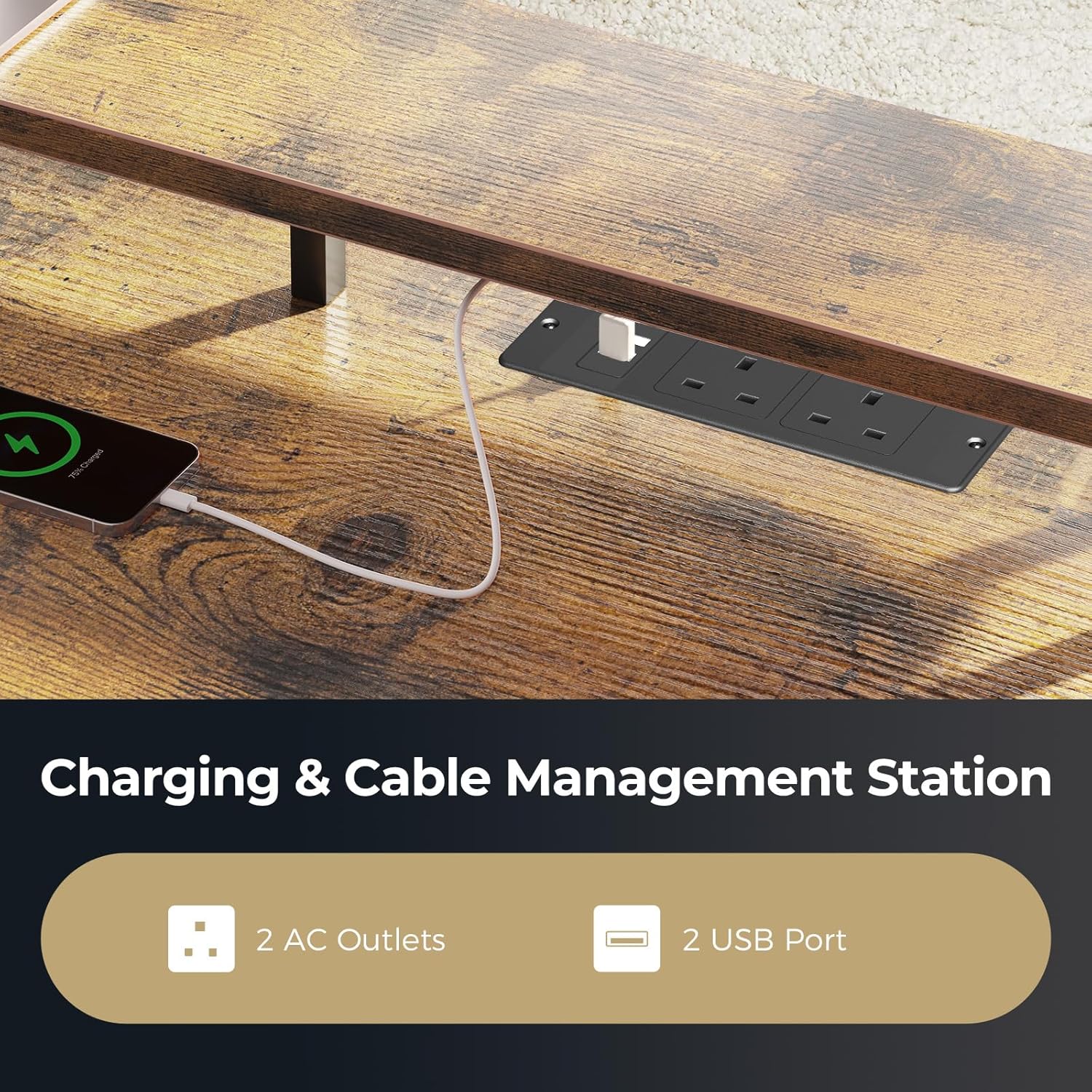Built for modern needs, this desk includes a charging station with 2 AC outlets and 2 USB ports to keep all your devices powered and organized. The integrated monitor stand and included keyboard tray create an ergonomic setup that promotes healthy posture and reduces strain during long hours of work, study, or gaming. Crafted with a durable laminated engineered wood top and sturdy metal frame, the Medy desk delivers both stability and long-lasting performance.