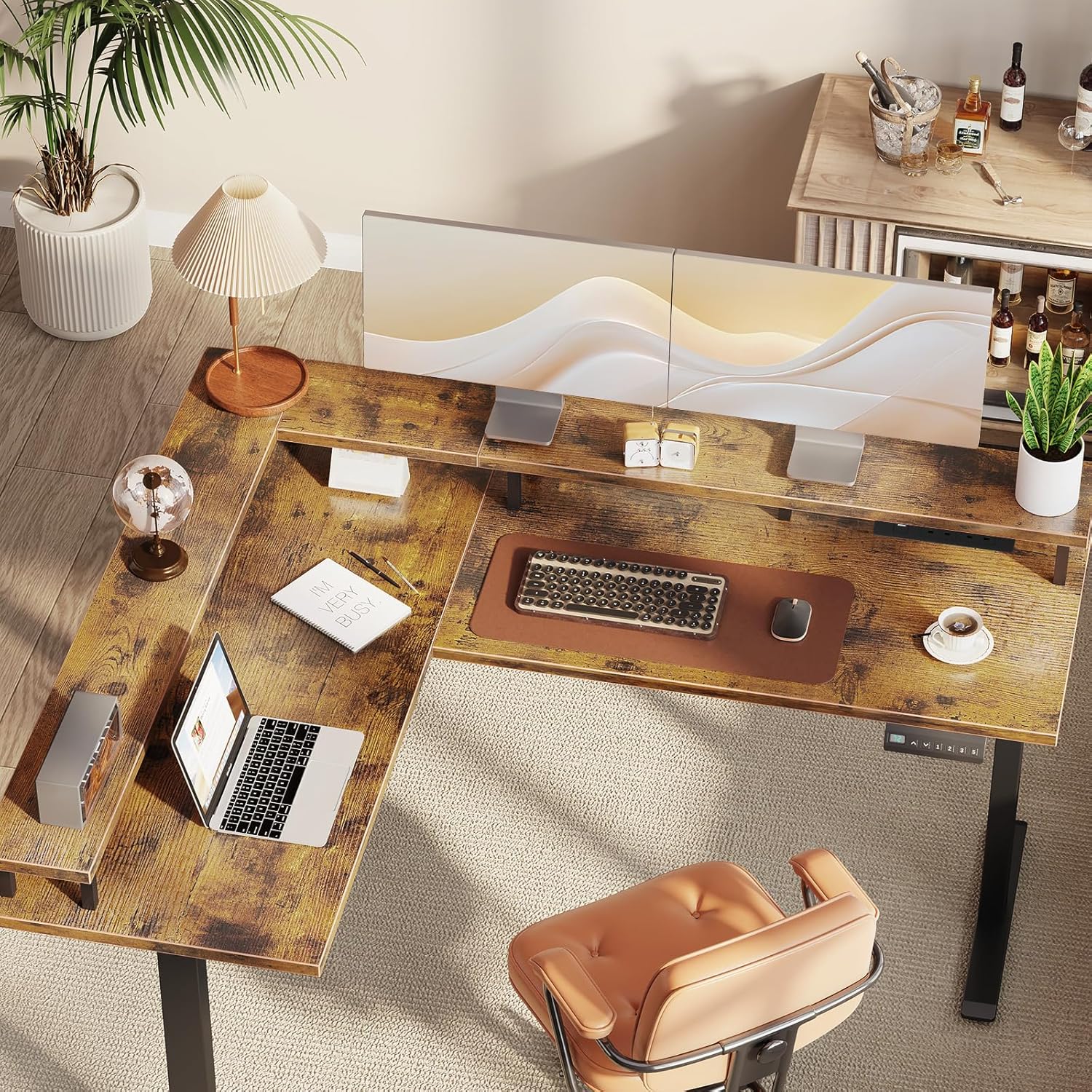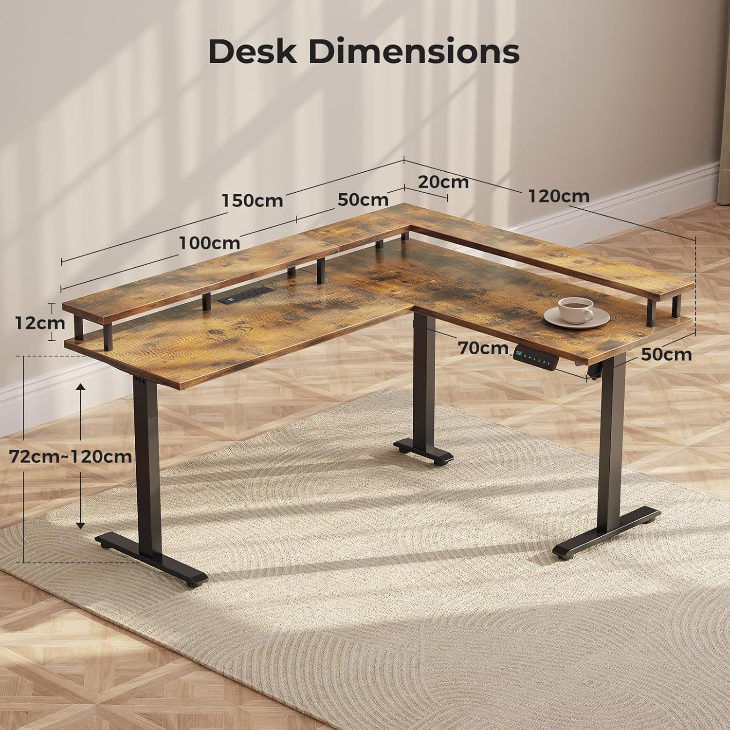 The Medy L-Shaped Electric Standing Desk - Brown is designed to combine productivity, comfort, and modern style in one smart workstation. Featuring a spacious 150cm L-shaped design, this desk maximizes corner space while offering plenty of room for multiple monitors, laptops, and accessories. Its reversible setup allows you to install the longer side on either the left or right, ensuring a perfect fit for your room layout.