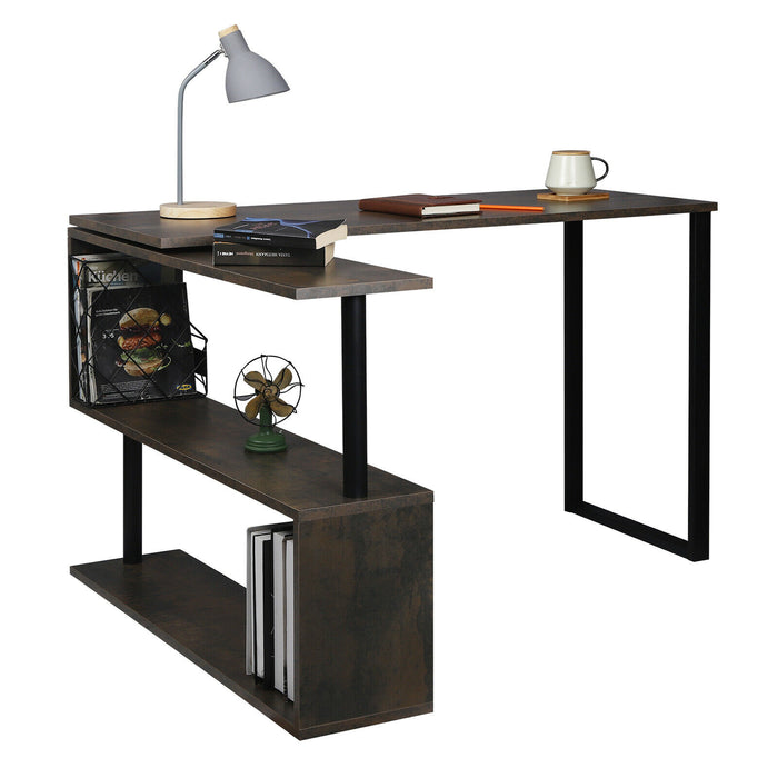 Moorton L-Shaped Corner Desk for Home Office - Black/Rust