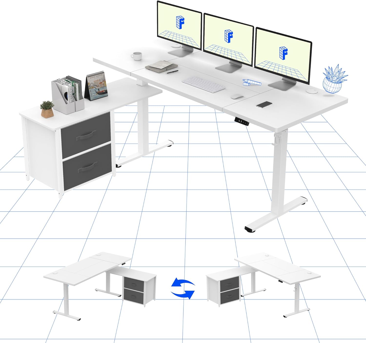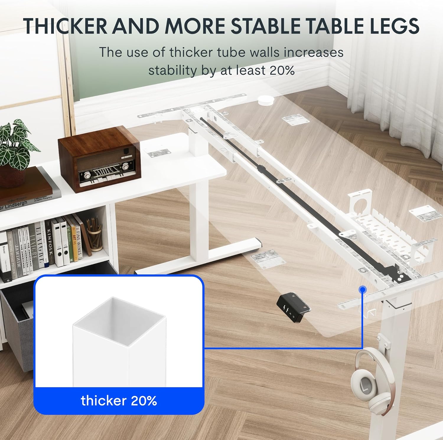 Upgrade your workspace with the Nicole L-Shaped Electric Desk, a modern minimalist solution designed for both productivity and comfort. Crafted with an ergonomic height-adjustable system, ample storage, and a sleek white lacquered finish, this desk is perfect for gaming, studying, or professional use. Its versatile L-shaped layout fits neatly into any corner, making it an excellent choice for maximizing room space while maintaining a stylish, clutter-free environment.