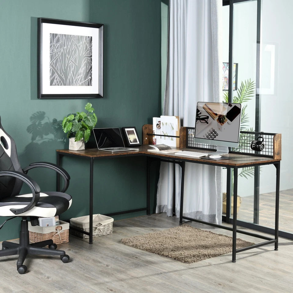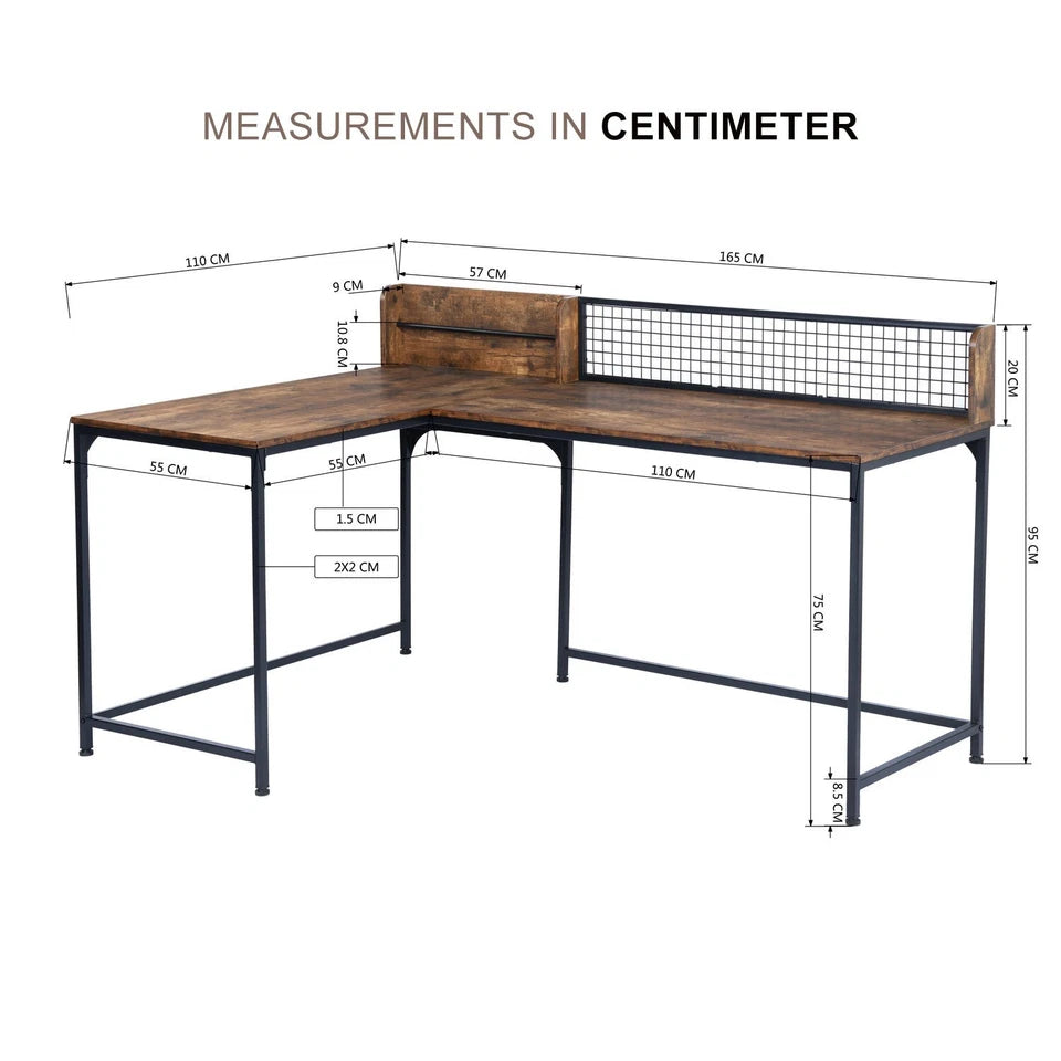 Bring style, durability, and practicality into your workspace with the Reece L-Shaped Desk by EKODE. Designed with a rustic brown wood finish and sturdy metal frame, this desk blends modern industrial style with smart functionality. Its spacious surface accommodates multiple monitors, while the integrated baffle and corner shelves offer clever storage for books, files, and accessories.