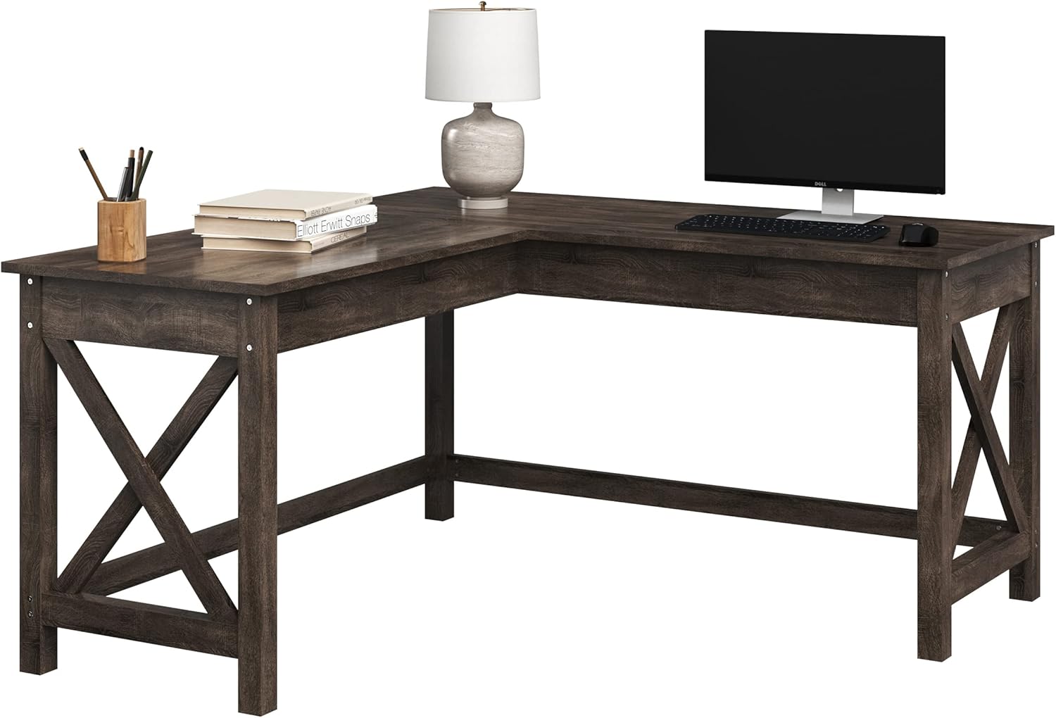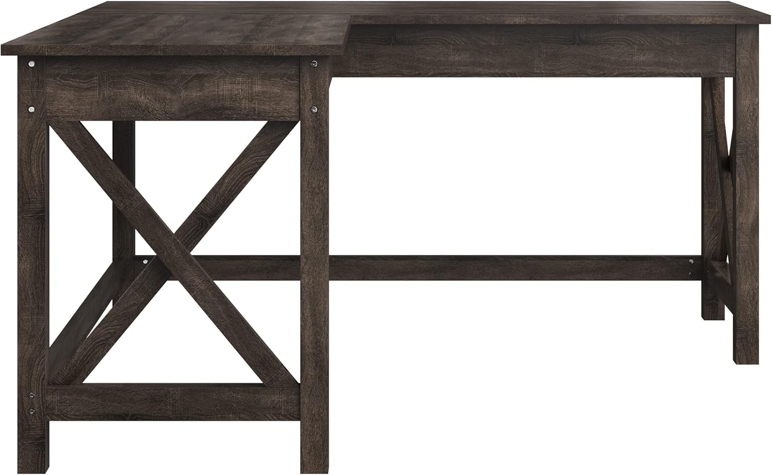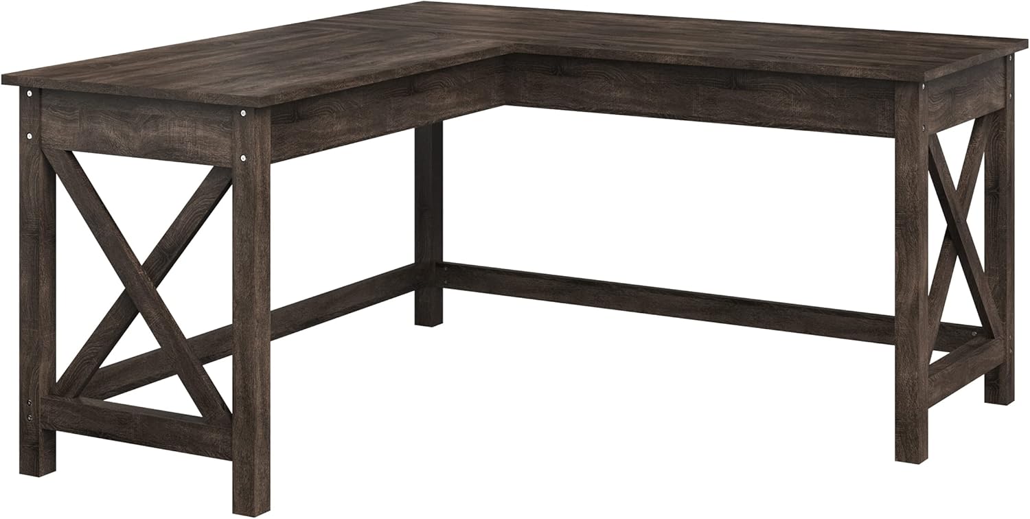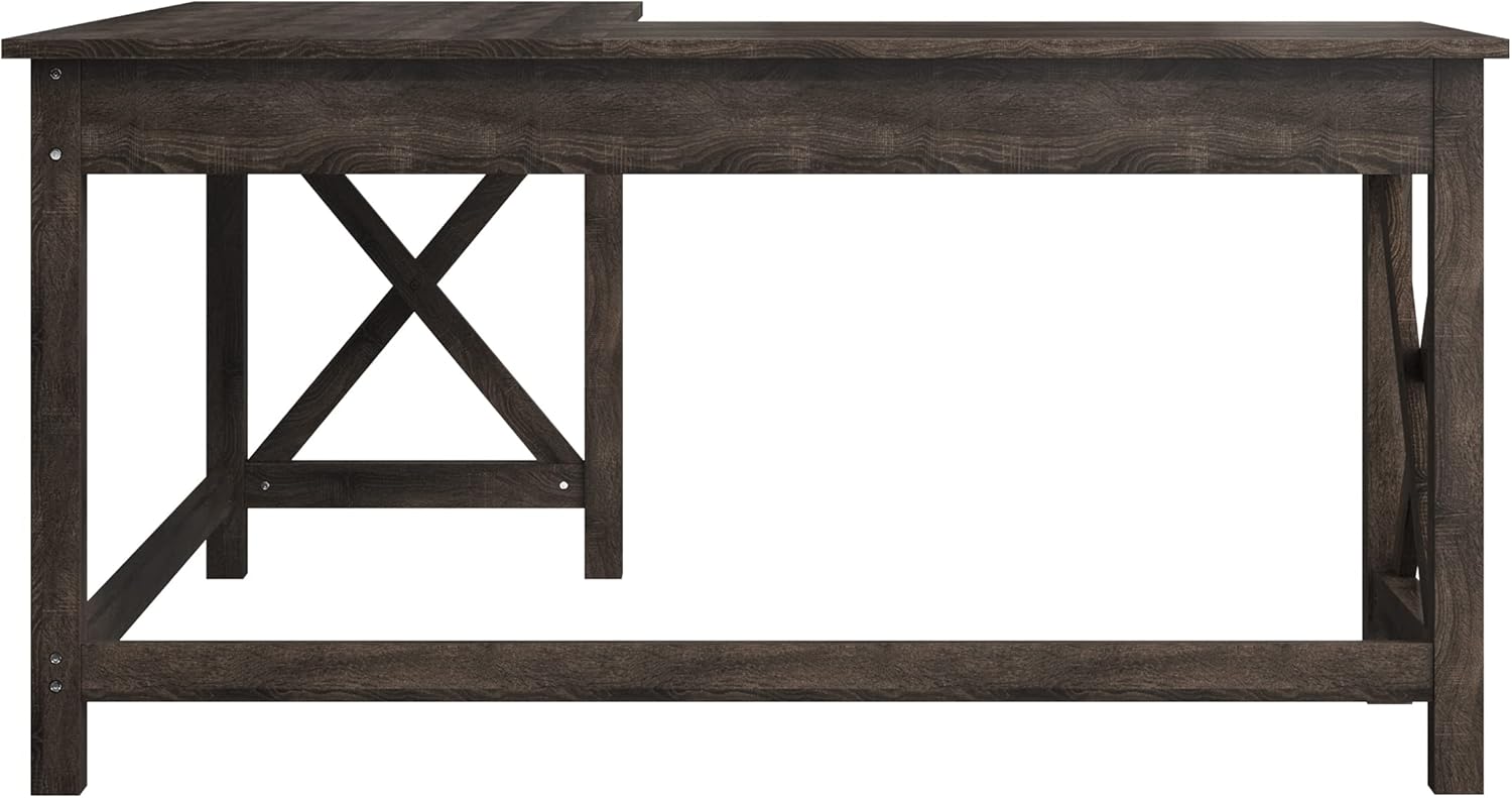 The Roa L-Shaped Home Office Desk – Dark Gray Wood combines rustic farmhouse charm with practical modern functionality, making it an ideal addition to any workspace. Designed with an efficient corner layout, this desk maximizes floor space while offering a spacious surface area perfect for multitasking. Its dark gray woodgrain finish adds a sophisticated, timeless look that blends seamlessly with various home décor styles—whether in your office, bedroom, gaming room, or basement.