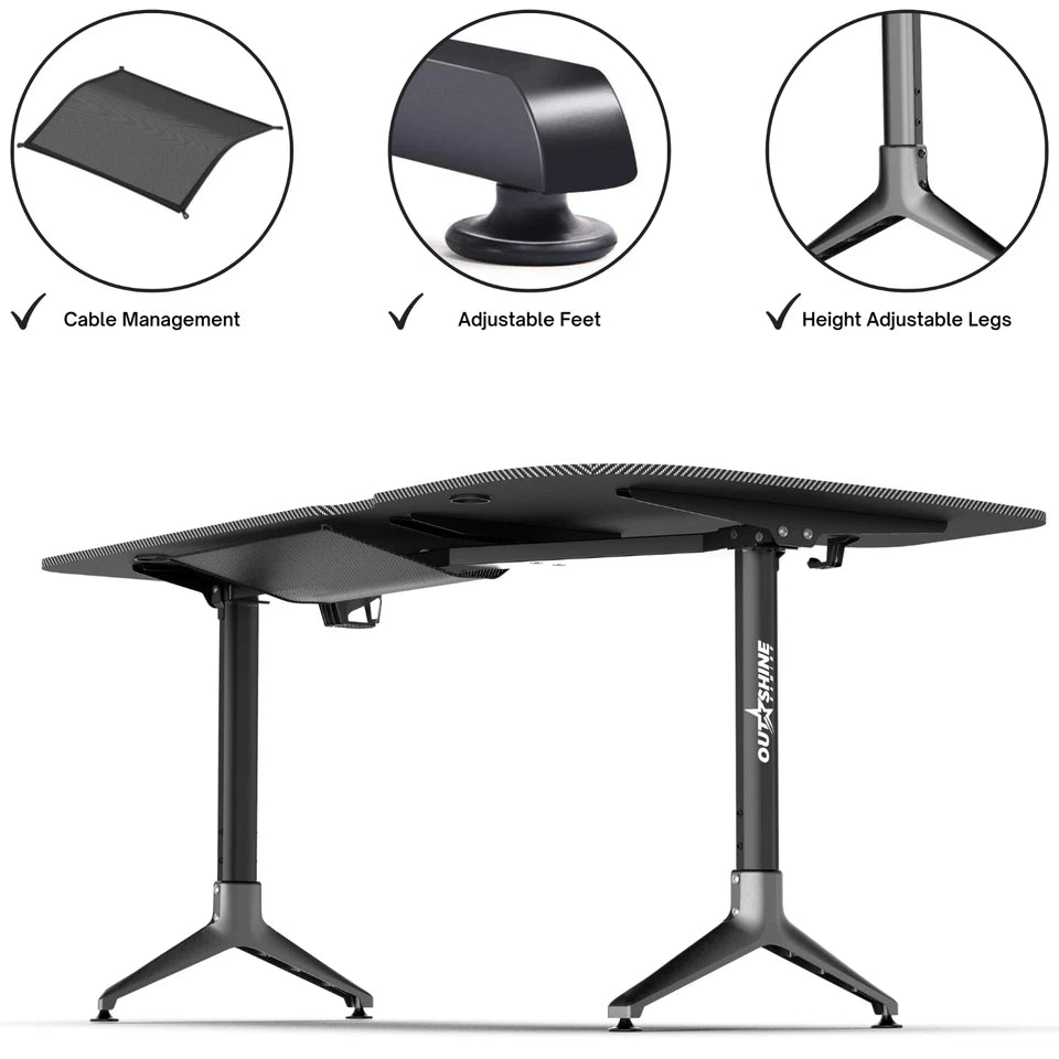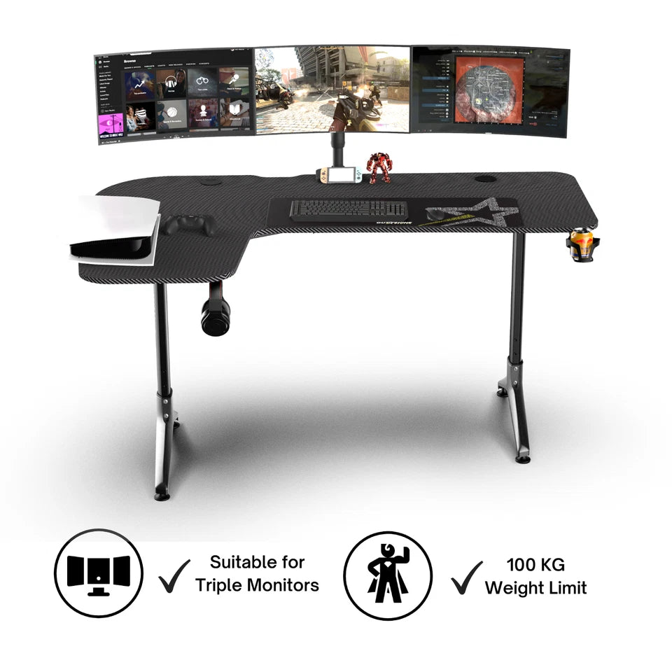 Take your gaming setup to the next level with the Robert L-Shaped Gaming Desk by Outshine Gaming, built for maximum performance, comfort, and durability. With its 1.6m wide main surface and 1m L-shaped extension, this desk provides ample space for multiple monitors, peripherals, and gaming gear. The carbon fibre texture finish adds a sleek, professional edge, while the ergonomic design ensures comfort during long gaming sessions.