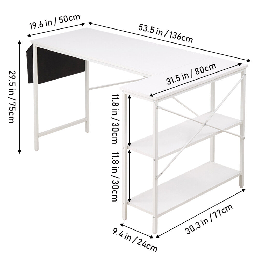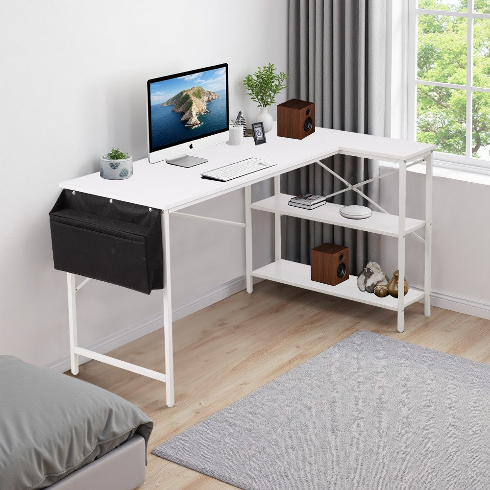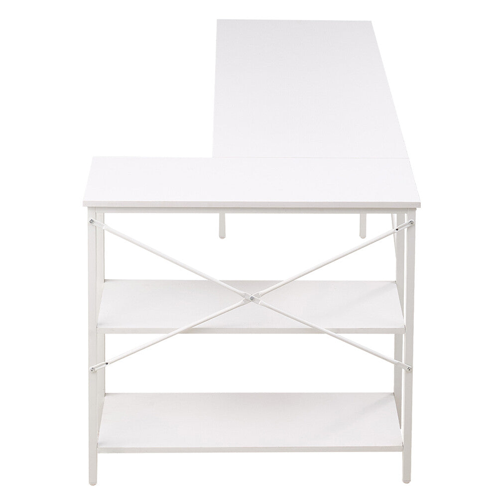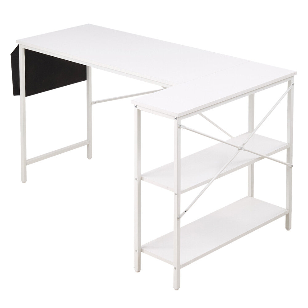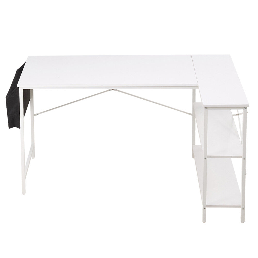 Its clean white finish blends into any modern interior, while the included storage bag and flexible desk layout offer convenient organization options. Built with a strong steel frame and adjustable legs, it stays stable even on uneven surfaces.