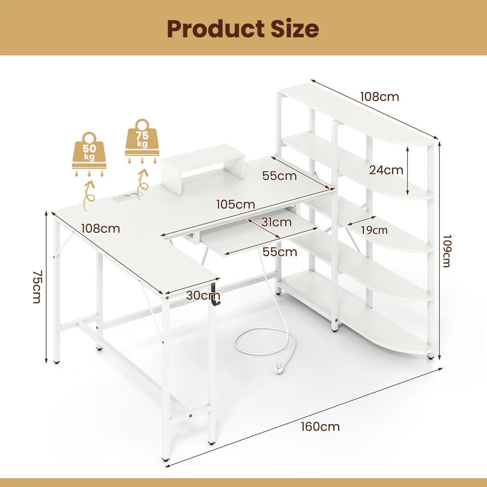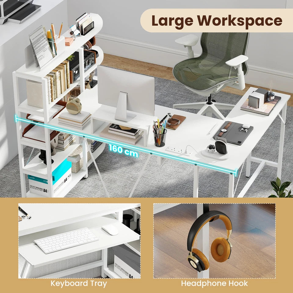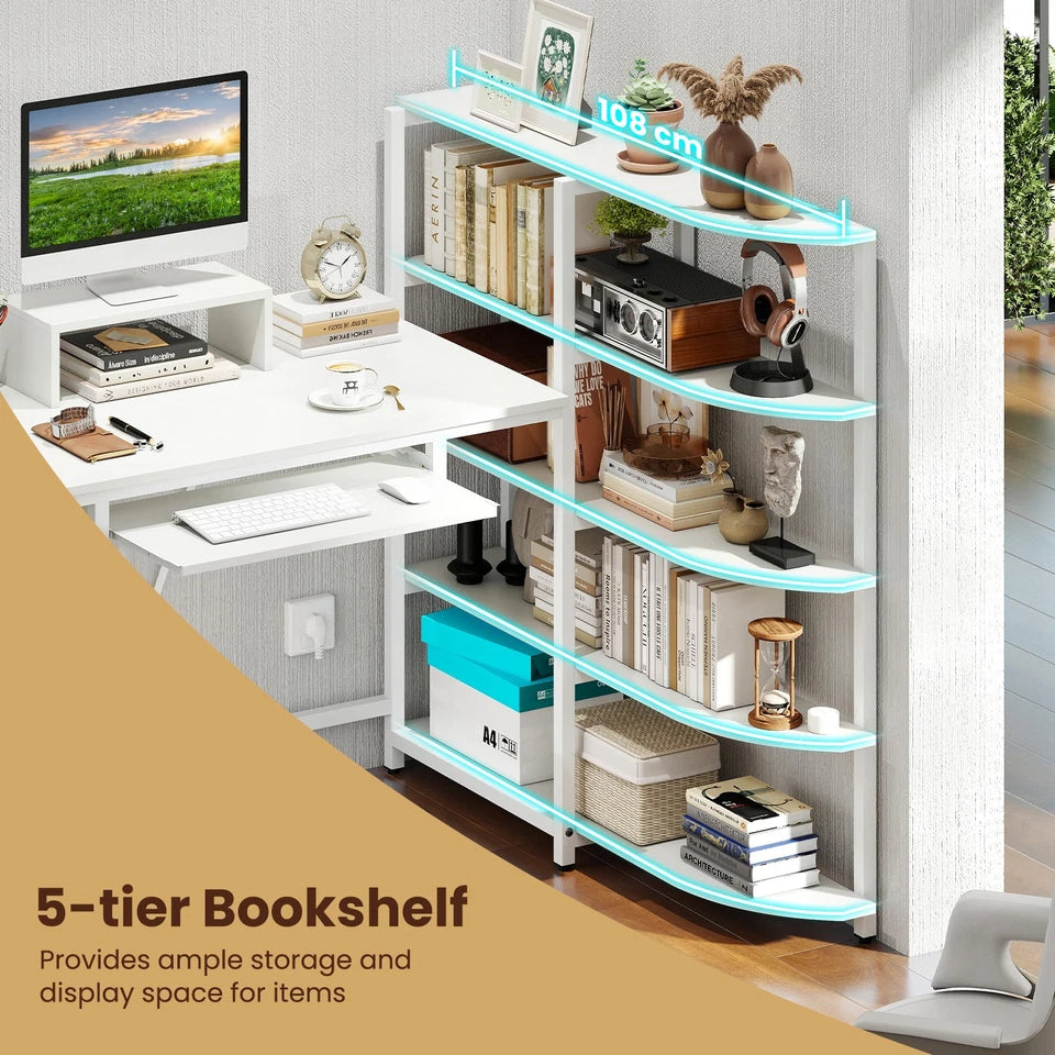 Built with smart storage and ergonomic features, the Tamsin desk includes a 5-tier bookshelf, a monitor stand, a keyboard tray, and a headphone hook, so you can stay organised while keeping necessities within reach. Reinforced with a sturdy frame and stability-enhancing structures, it offers a reliable and comfortable setup for any home office, bedroom, or study area.