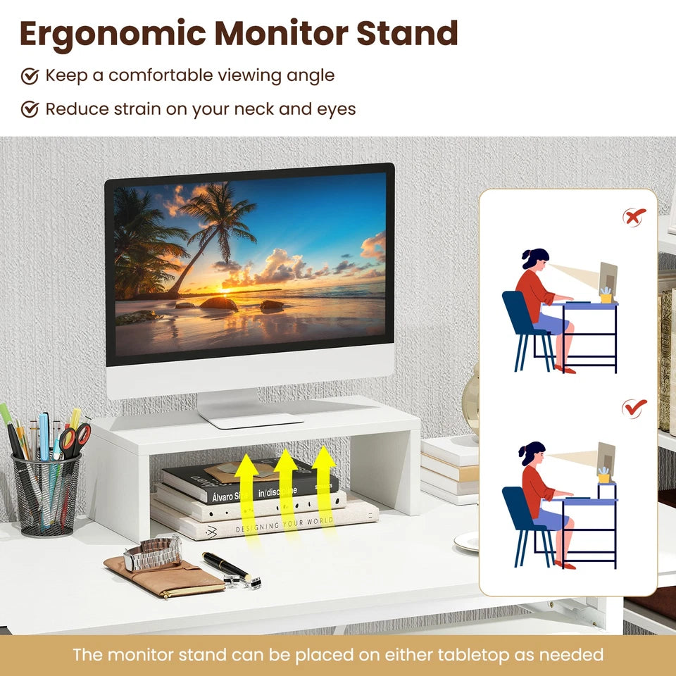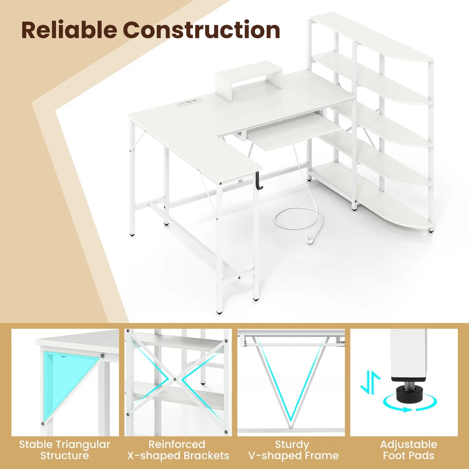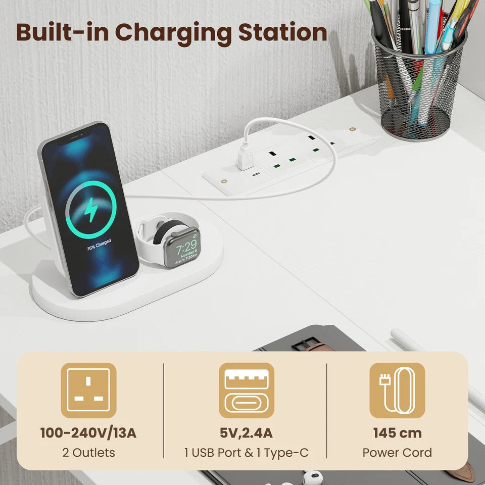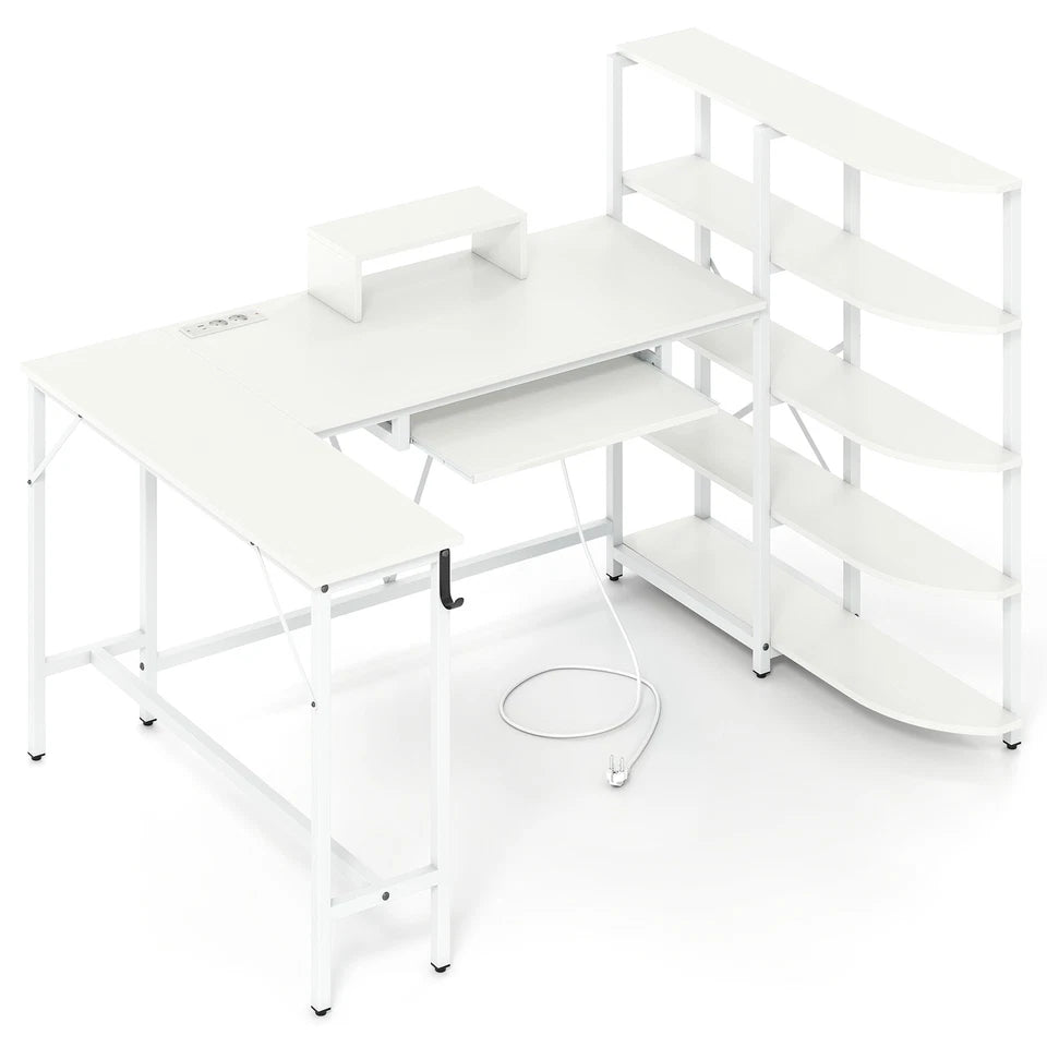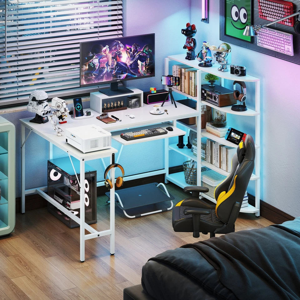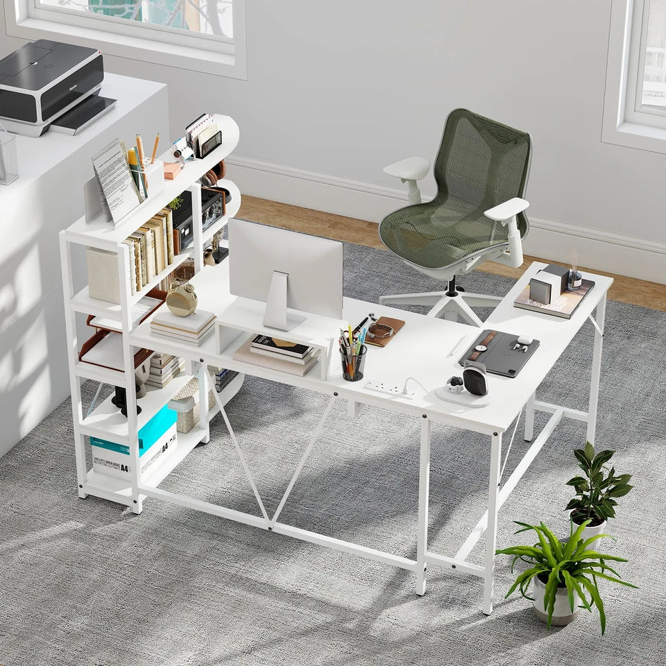 Transform your workspace with the Tamsin L-Shaped Home Office Desk, designed to deliver maximum functionality in a clean, modern white finish. This workstation offers an expansive dual-surface layout that easily supports multiple monitors, laptops, printers, and accessories—making it ideal for working, studying, writing, and gaming.