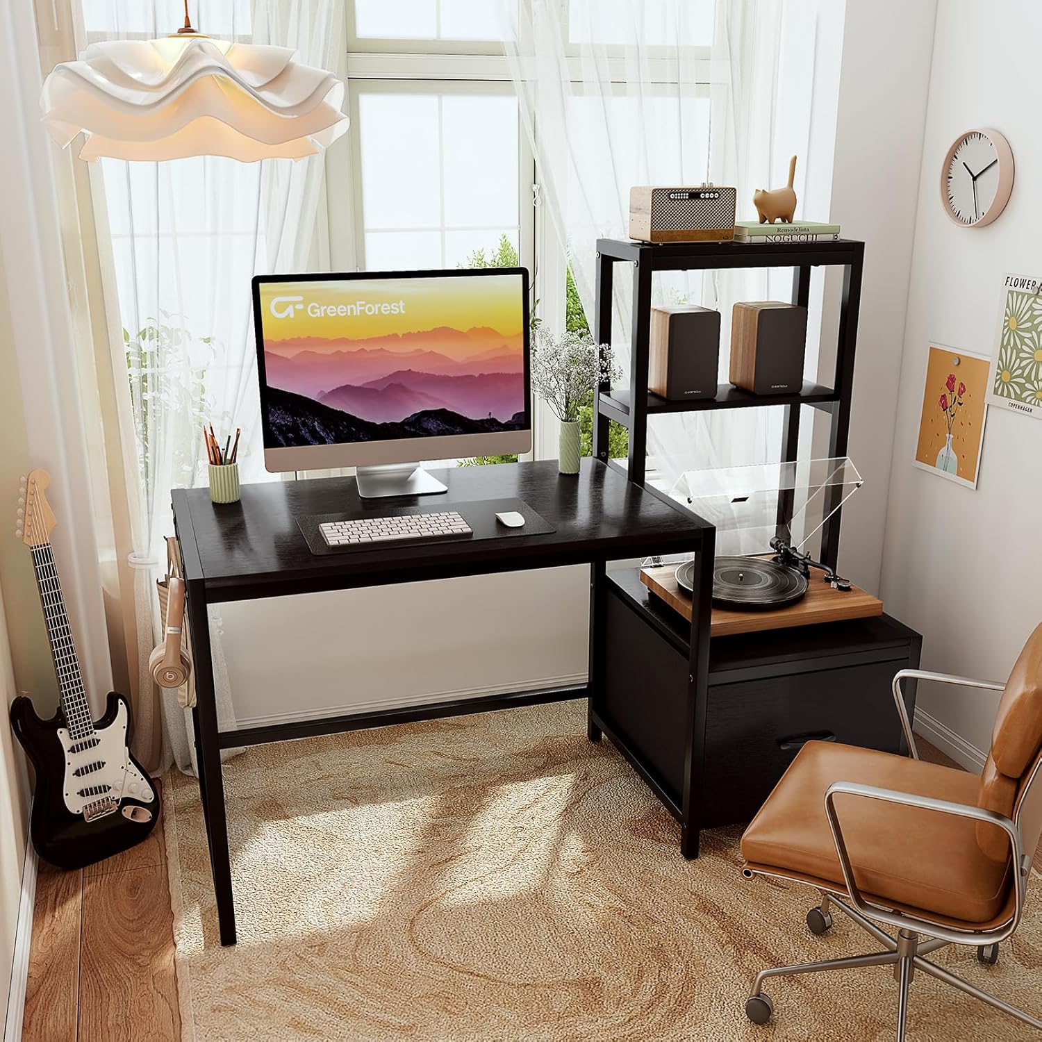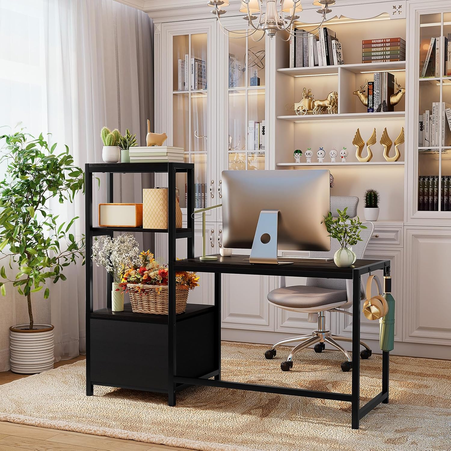 Upgrade your workspace with the Thayer Reversible Computer Desk – Black, a modern and highly functional workstation designed to keep your setup organized and efficient. With its spacious 150 cm wide surface, this desk provides ample room for gaming monitors, office essentials, or creative equipment. Its sleek black finish and sturdy metal frame bring a contemporary look that fits seamlessly into bedrooms, offices, or gaming rooms.