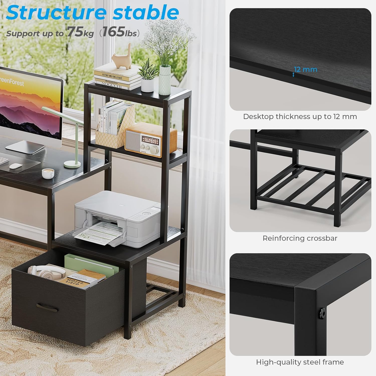 Built for flexibility and practicality, the Thayer desk features reversible shelves, a smooth-gliding fabric drawer, and dedicated storage for printers, books, and accessories. Thoughtfully designed with hooks for cable management and bags, it ensures your workspace stays clean and clutter-free. Whether you're gaming, studying, or working, this desk delivers durability, stability, and smart organization in one streamlined setup.