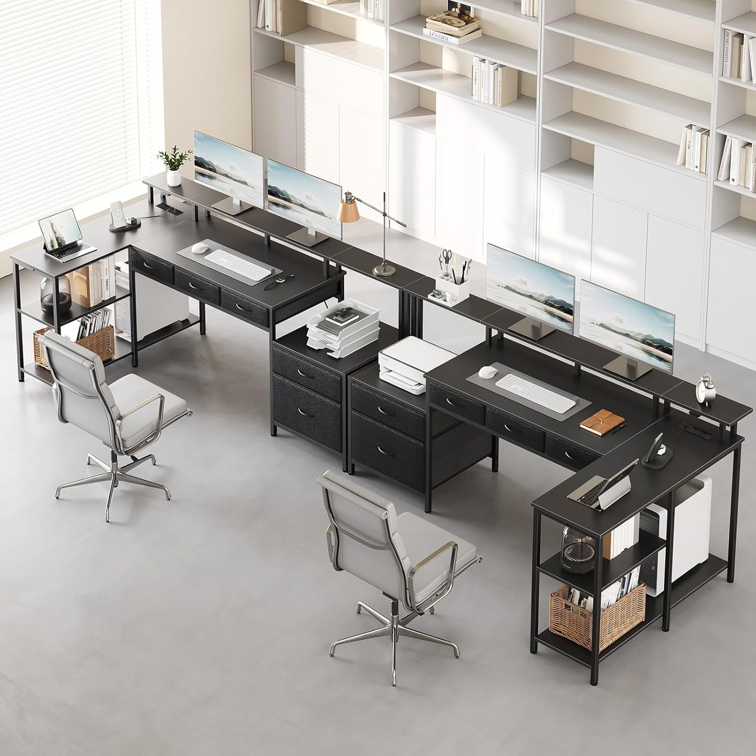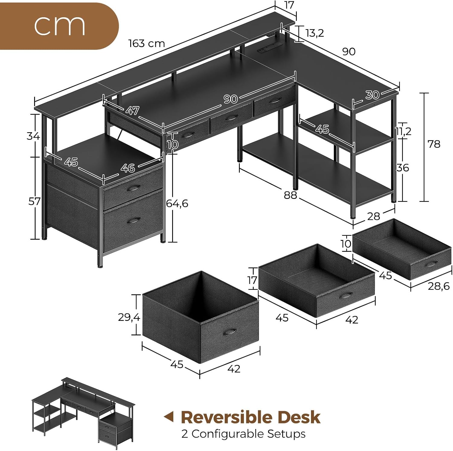 The William L-Shaped Computer Desk - Black combines modern design with advanced functionality, making it the perfect choice for both gaming and home office use. Its spacious 163cm desktop provides ample room for multiple monitors, laptops, and accessories, while the reversible layout allows you to configure it as an L-shaped corner desk or a straight 2-person workstation. The raised monitor stand ensures ergonomic comfort by keeping screens at eye level, helping to reduce back and neck strain during long hours of work or play.