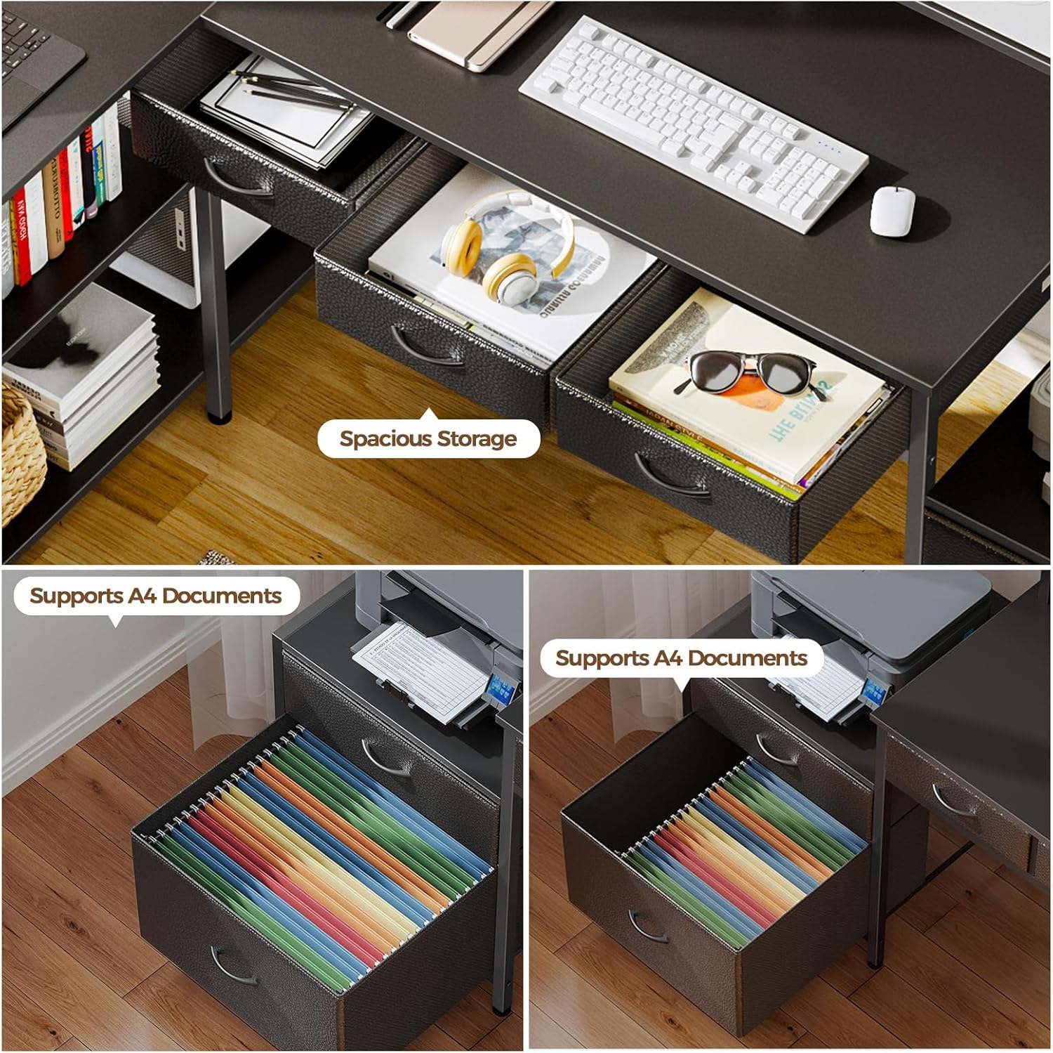 • Includes 5 drawers (1 file drawer, 3 fabric drawers, 1 printer cabinet).