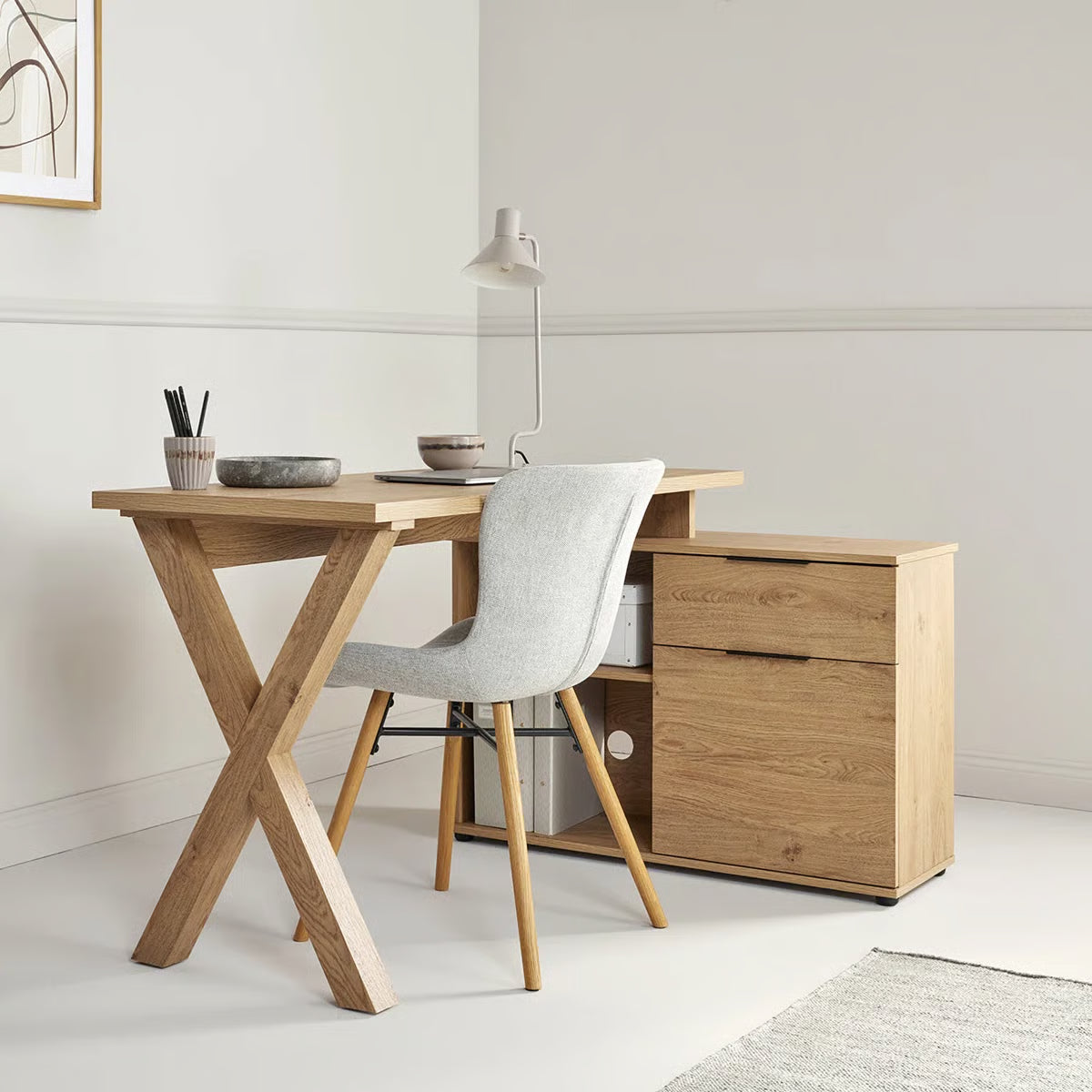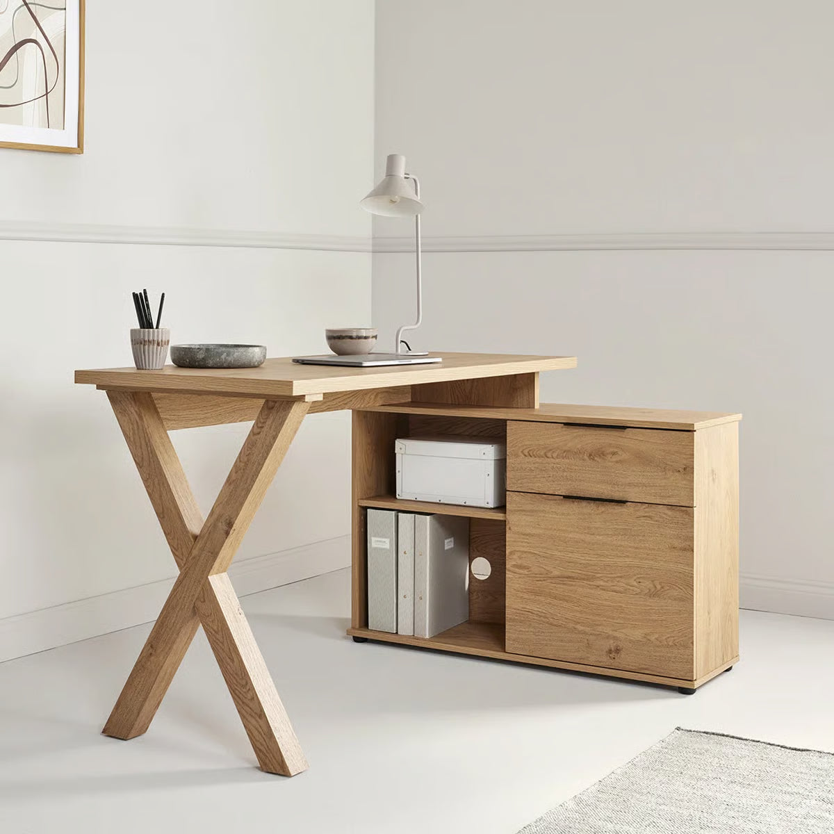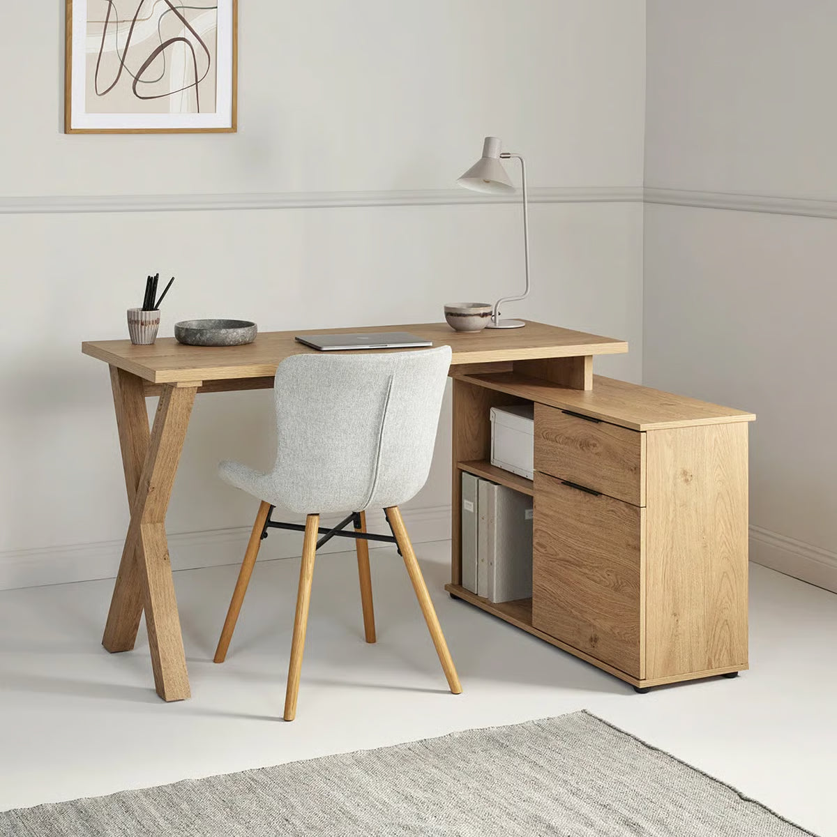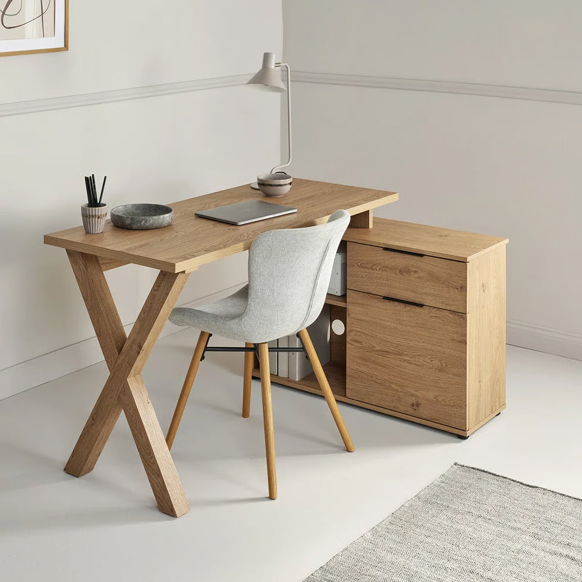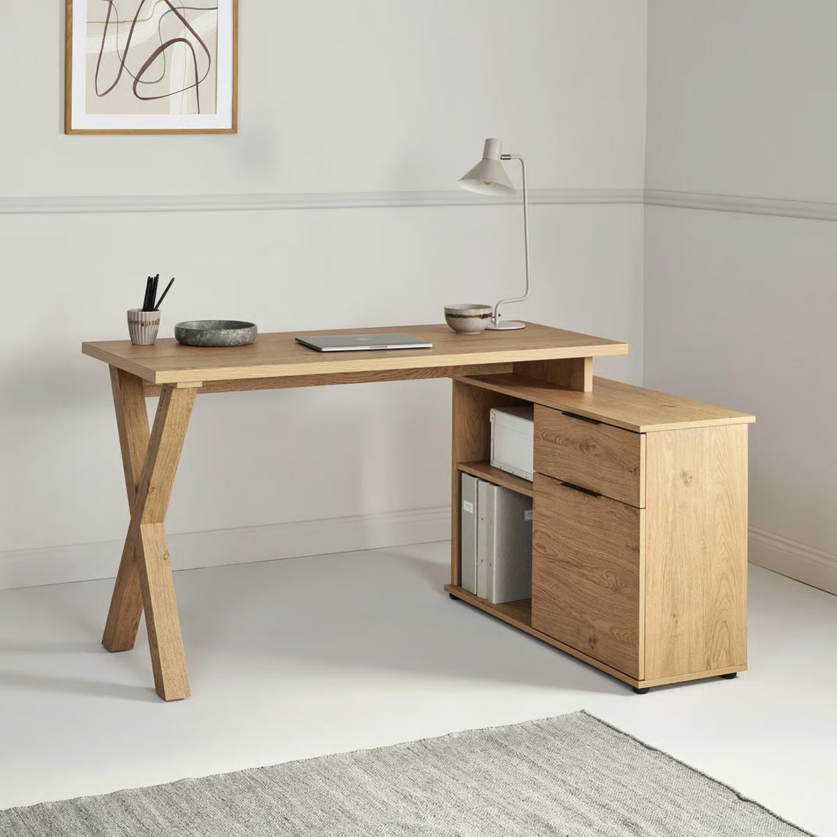 Bring efficiency and elegance to your workspace with the Winston 140Cm L-Shaped Home Office Desk with Storage. Crafted with an extra-thick tabletop and supported by a robust X-frame base, this corner desk blends durability with a modern industrial aesthetic. Designed for flexibility, the desk can be configured for left- or right-hand orientation, making it a perfect fit for any room layout. Whether you're managing multiple screens, organizing documents, or diving into creative work, the expansive work surface ensures you have all the space you need.