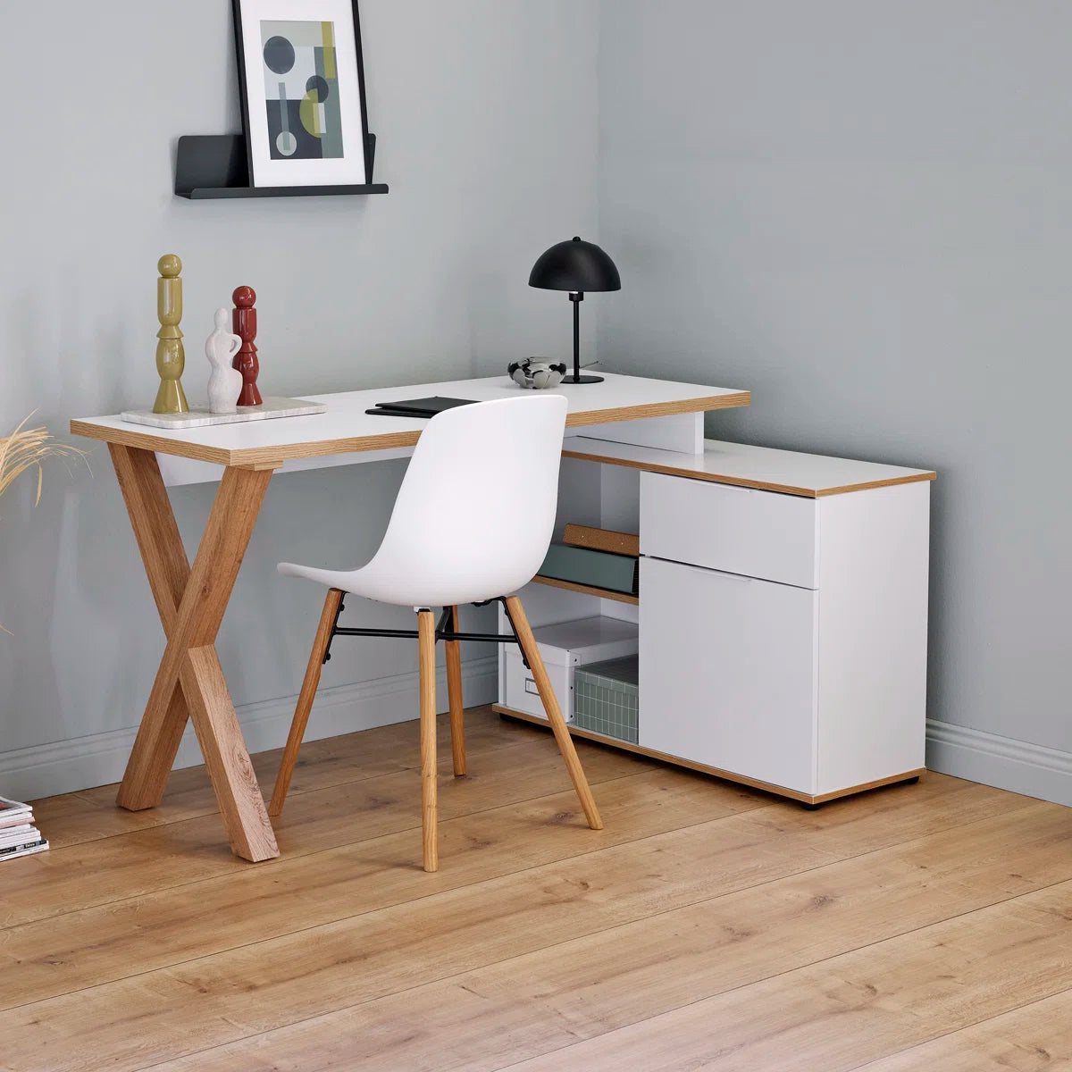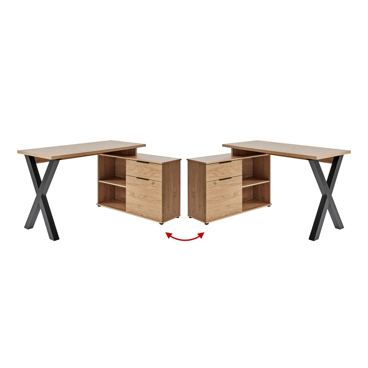 Bring efficiency and elegance to your workspace with the Winston 140Cm L-Shaped Home Office Desk with Storage. Crafted with an extra-thick tabletop and supported by a robust X-frame base, this corner desk blends durability with a modern industrial aesthetic. Designed for flexibility, the desk can be configured for left- or right-hand orientation, making it a perfect fit for any room layout. Whether you're managing multiple screens, organizing documents, or diving into creative work, the expansive work surface ensures you have all the space you need.