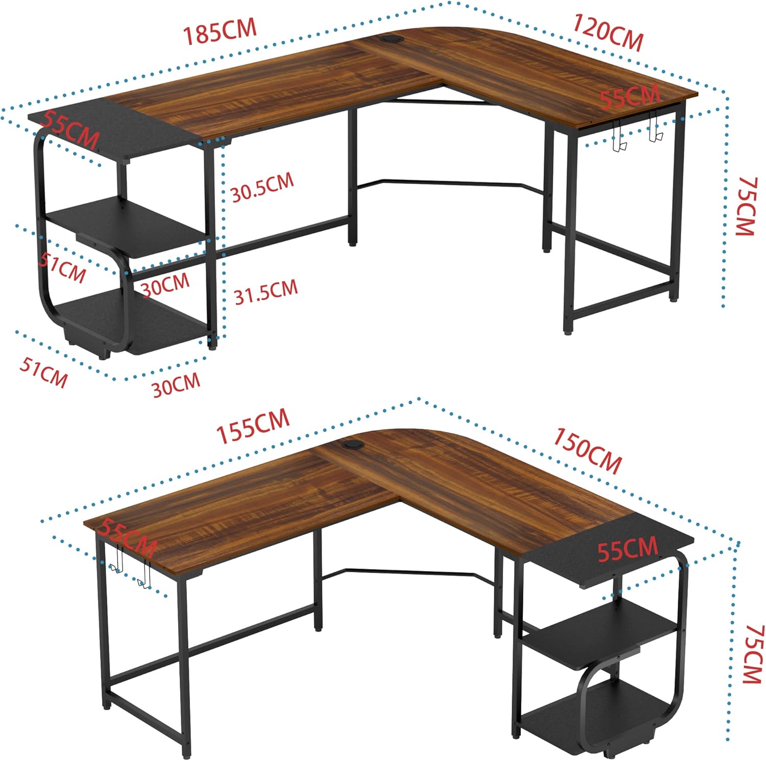 Upgrade your workspace with the Zephyra L-Shaped Workstation Desk, designed for style, function, and versatility. Featuring a modern Teak & Black finish, this desk offers an extra-spacious dual-surface layout—perfect for gaming, computer work, studying, crafting, and multi-monitor setups. Its reversible design lets you install the shelves on either the left or right side, ensuring a custom fit for any room layout.